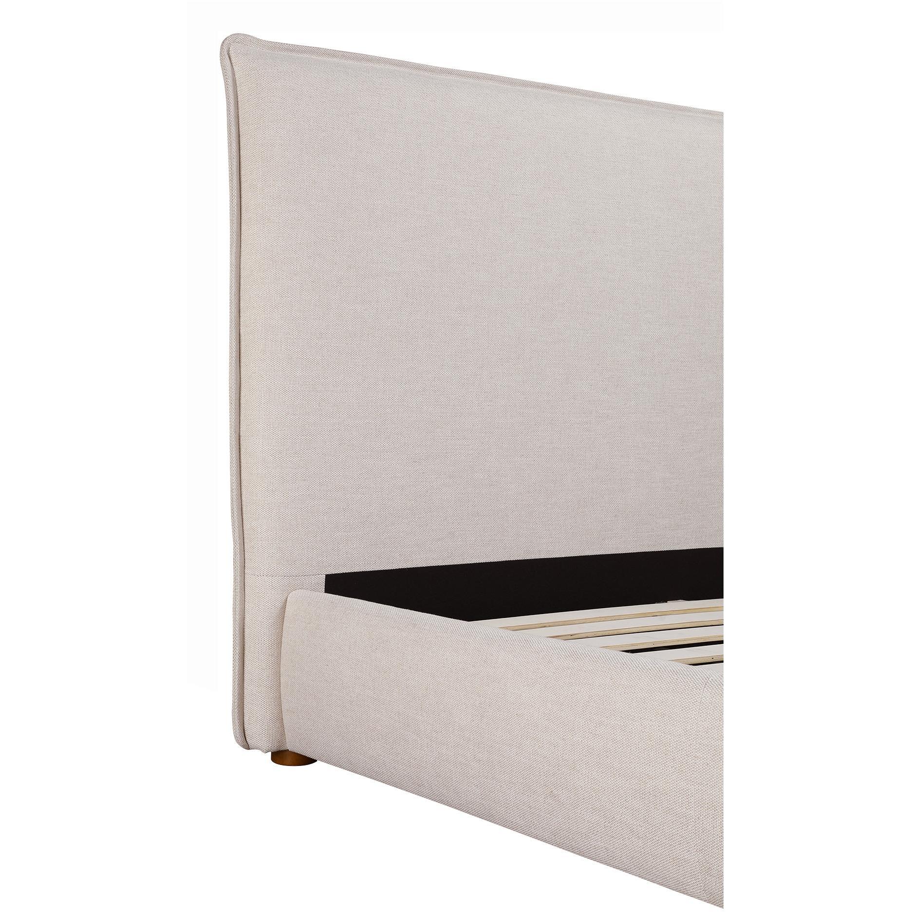Upholstered from a soft, linen blend fabric, the Luzon bed is relaxed and welcoming. Its padded tall headboard and solid pine and engineered wood frame make it comfy and reliable, while its timeless design and neutral tone showcase a classic, practical look.