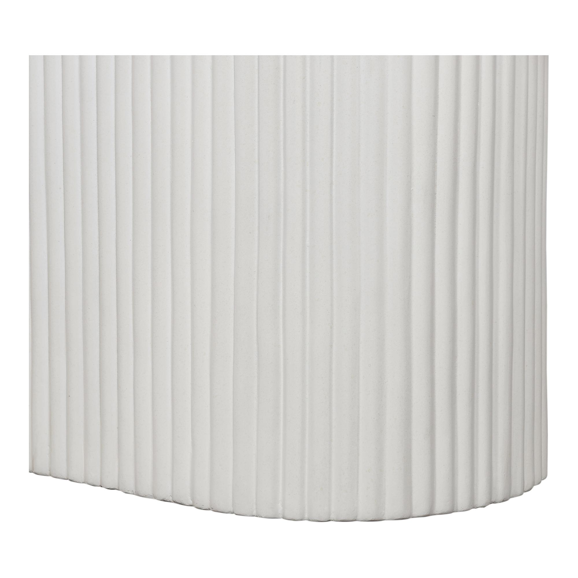 - Ribbed, pure white hollow concrete base. Comfortably seats 6