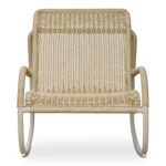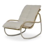 The Lyra rocking chair’s sleek aluminum frame harmoniously blends with synthetic wicker, creating an understated luxe feel. The plush cushion molds to your body, inviting relaxation. Remove the cushion to reveal intricate woven seating, offering a minimalist alternative.
