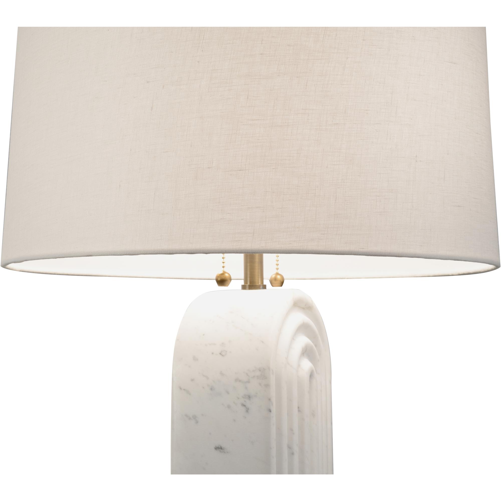 The Lyssy Table Lamp is a celebration of form, material, and Art Deco influence. The honed Carrera marble body is carved to create a delicate play of light and shadow.