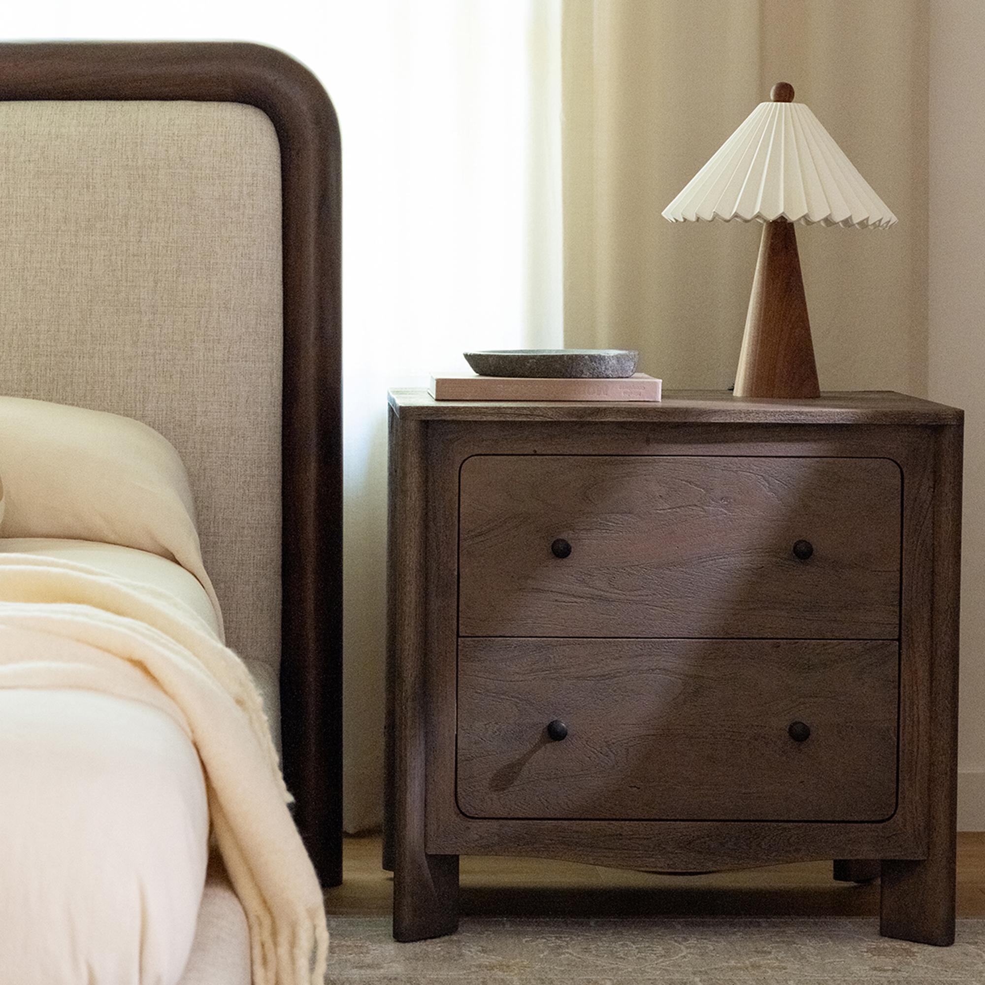 Curve meets edge. Mabel is all about sculptural detail done right. A curved base gives a subtle nod to tradition, while inverted diagonal legs add lift and a modern twist. The wire-brushed Acacia brings out texture and tone, highlighting the wood’s natural grain. Compact, confident, and grounded by design.