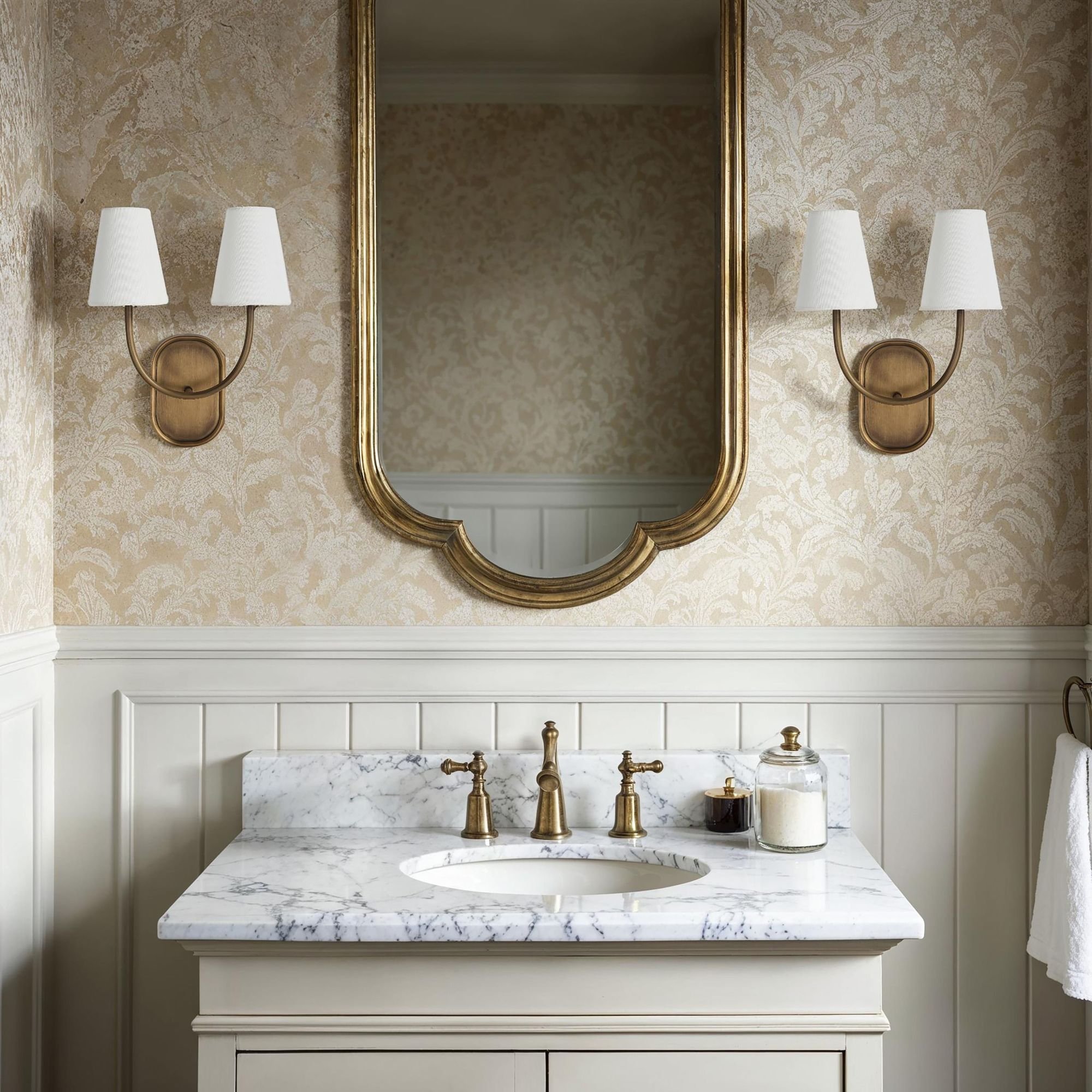 No design project is complete without the drama and interest that layered lighting brings. This 2-light wall sconce is a great choice when you want to double down on the ambient illumination you can add to a room. Its transitional aesthetic, dark antique brushed brass-plated body, and ivory linen tapered shades make this two-armed fixture ideal for lighting up any space with a warm and welcoming glow.