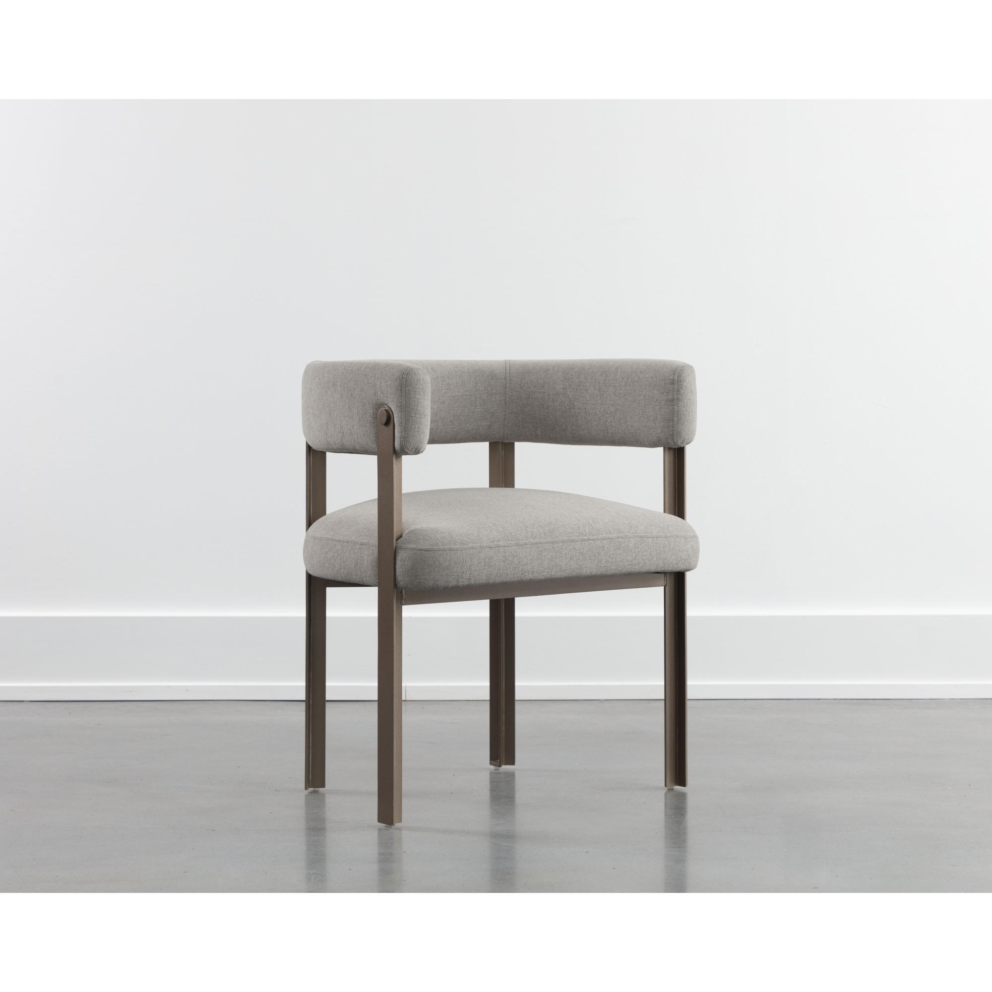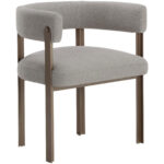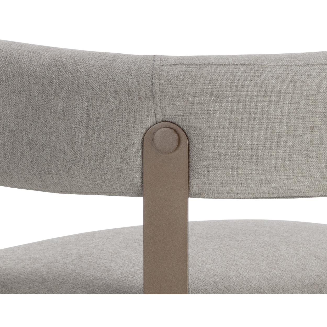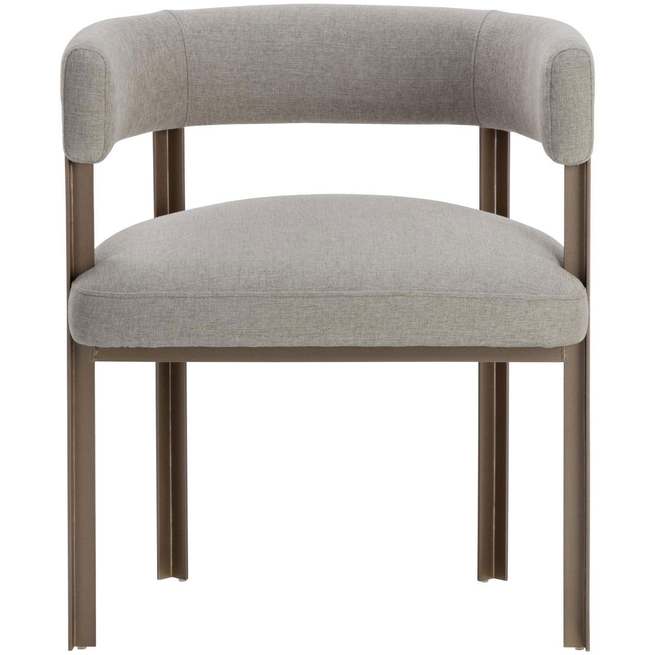 This beautiful dining armchair is designed with style and elegance. Features a contemporary barrelback seat in ernst sandstone fabric with a powder coated steel base in a gold finish.