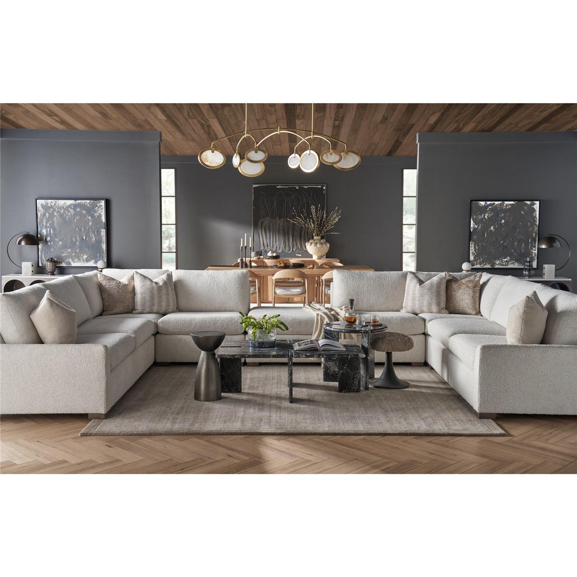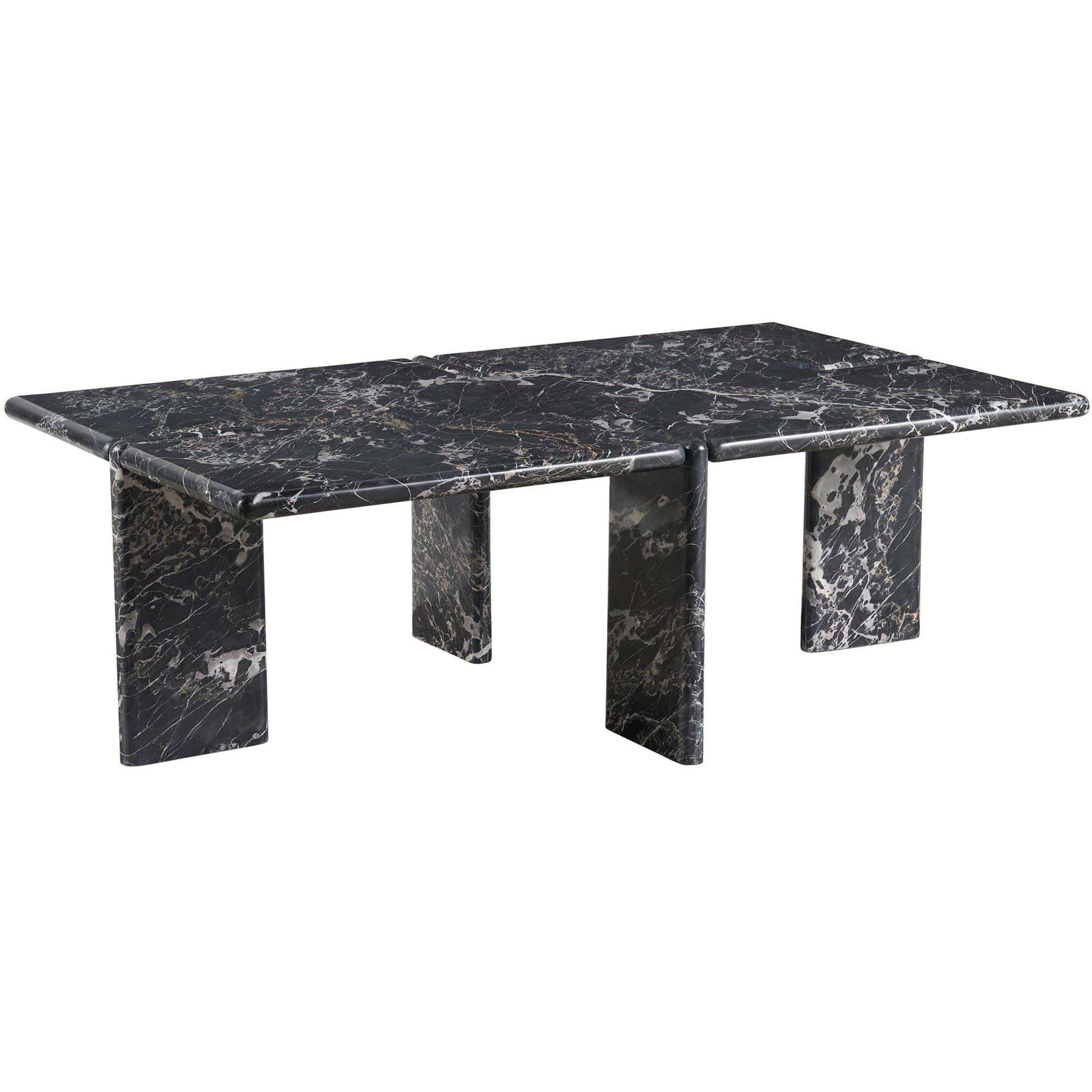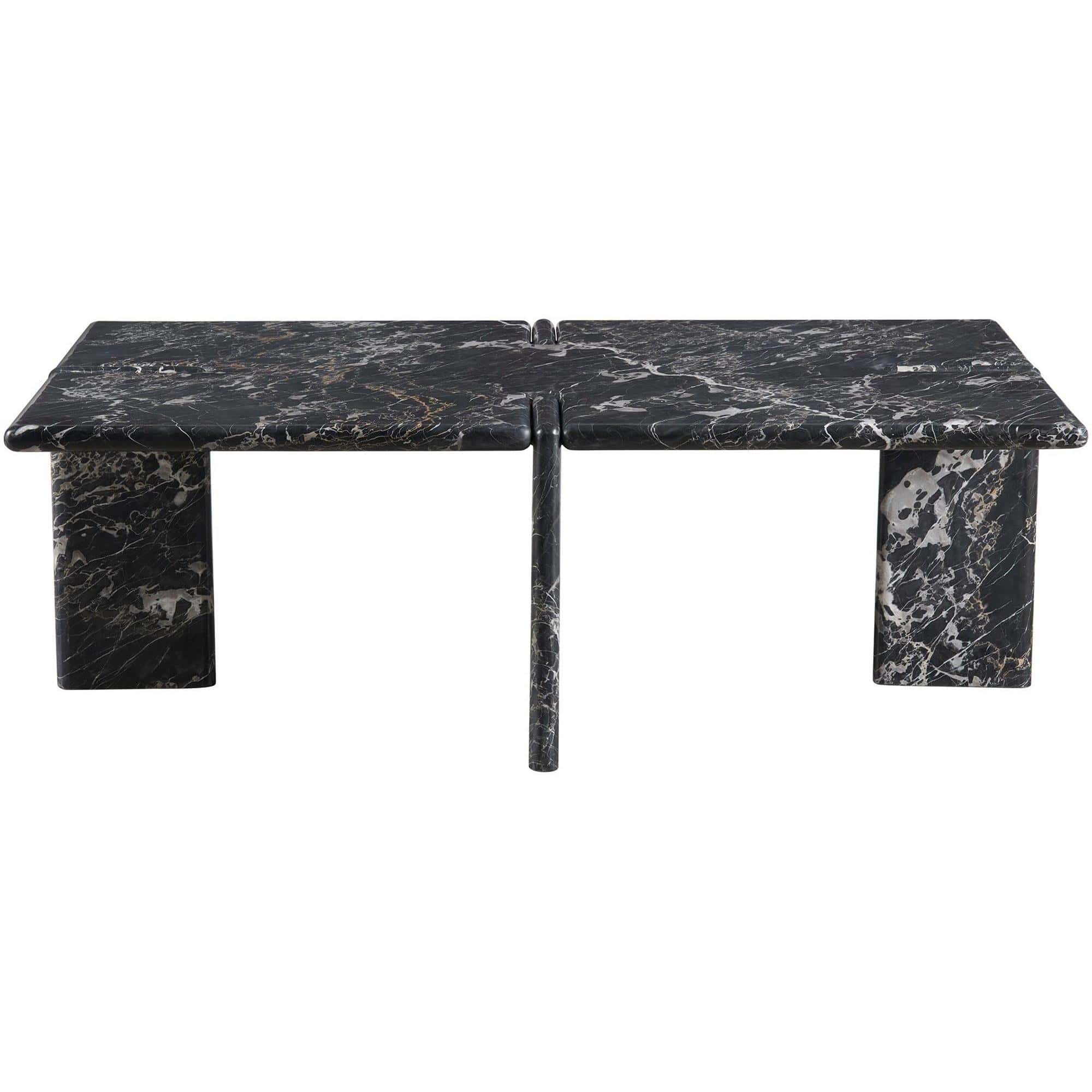 The Magnus Cocktail Table stands as a bold centerpiece, crafted from deep black Golden Porter Marble. Its robust, sleek silhouette commands attention, with slab-like legs that accentuate an intricate play of stone and form. This table is a statement of elegance and strength, perfectly blending luxurious materials with a commanding presence.