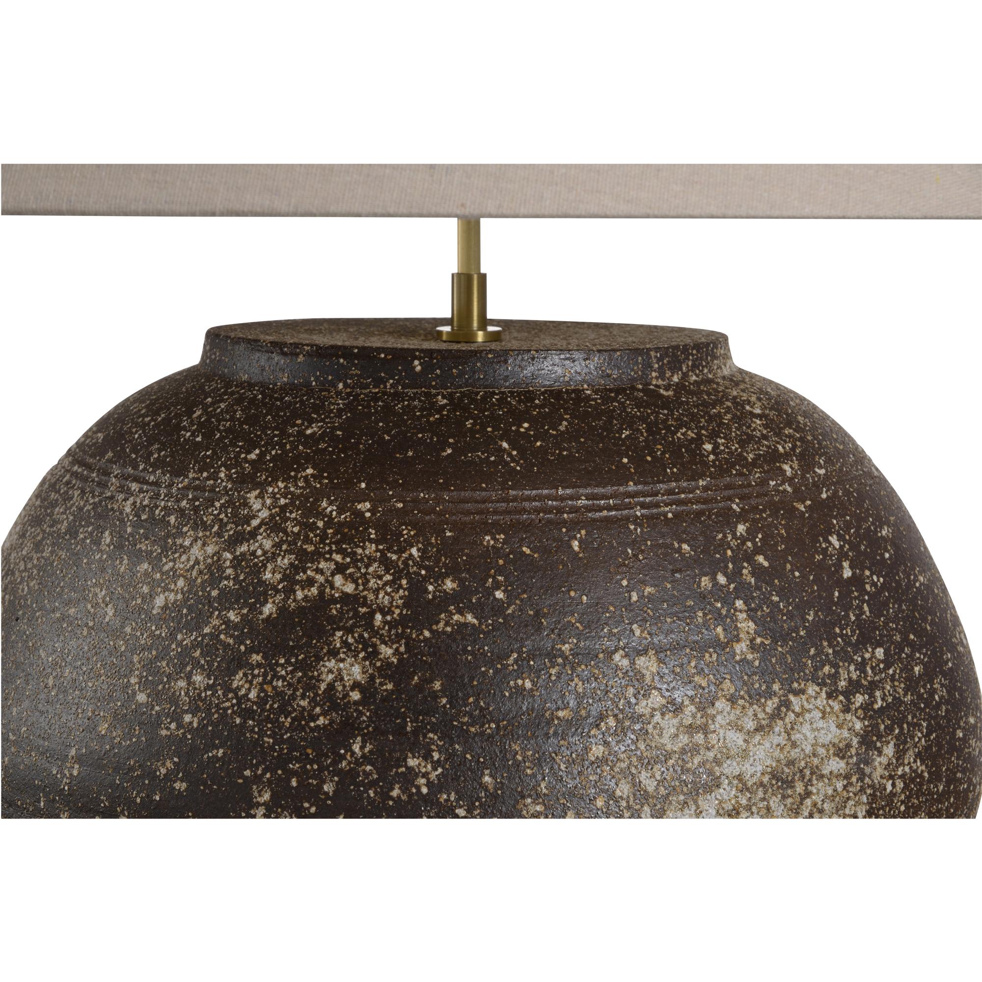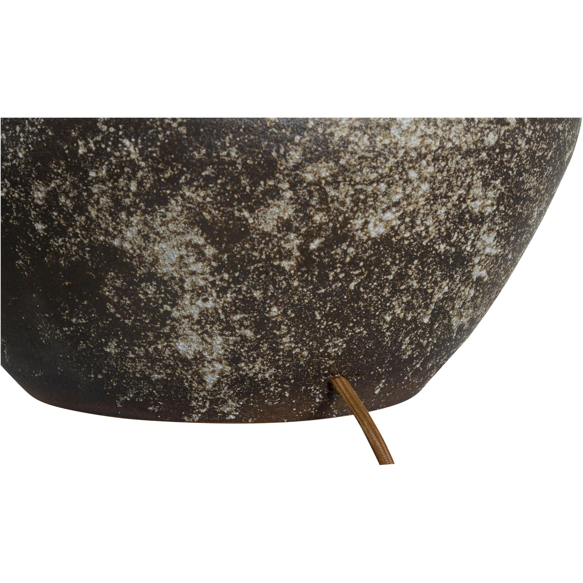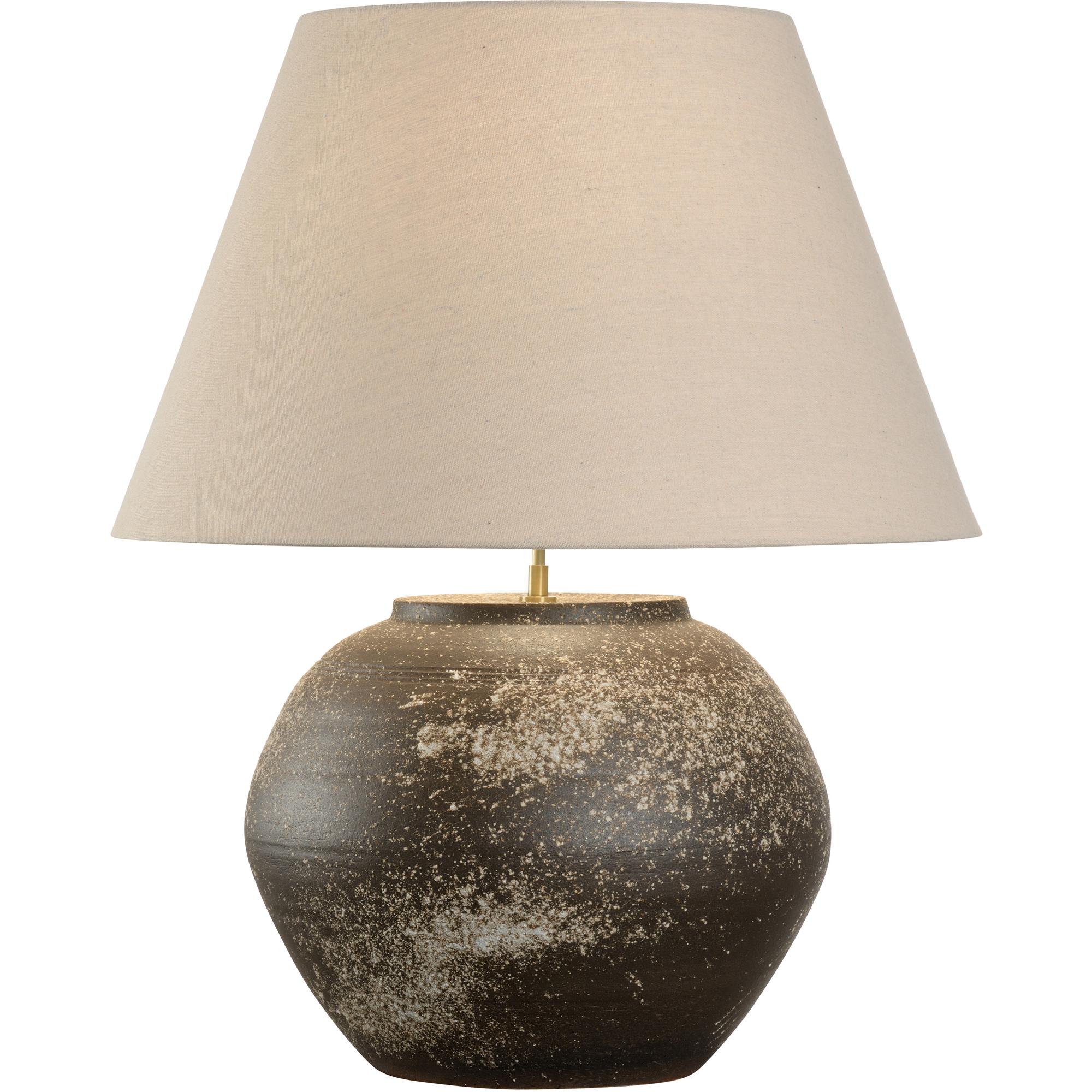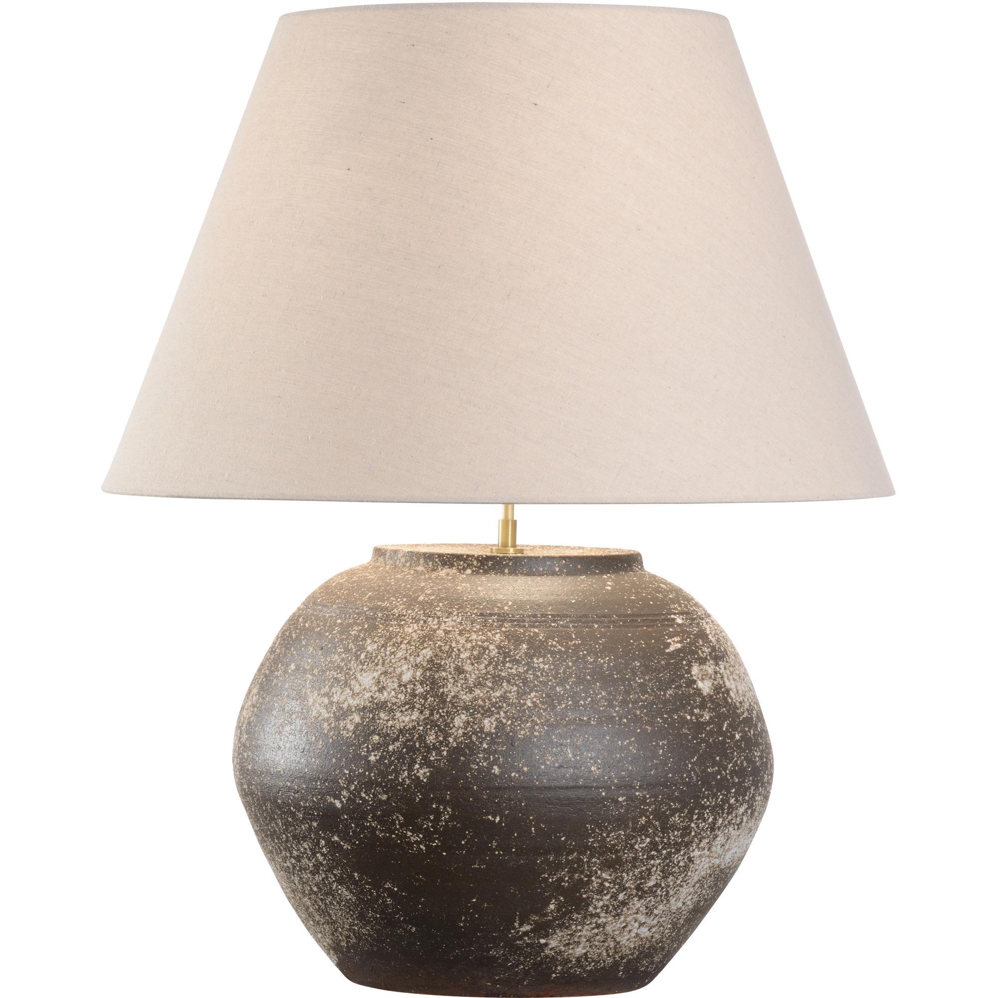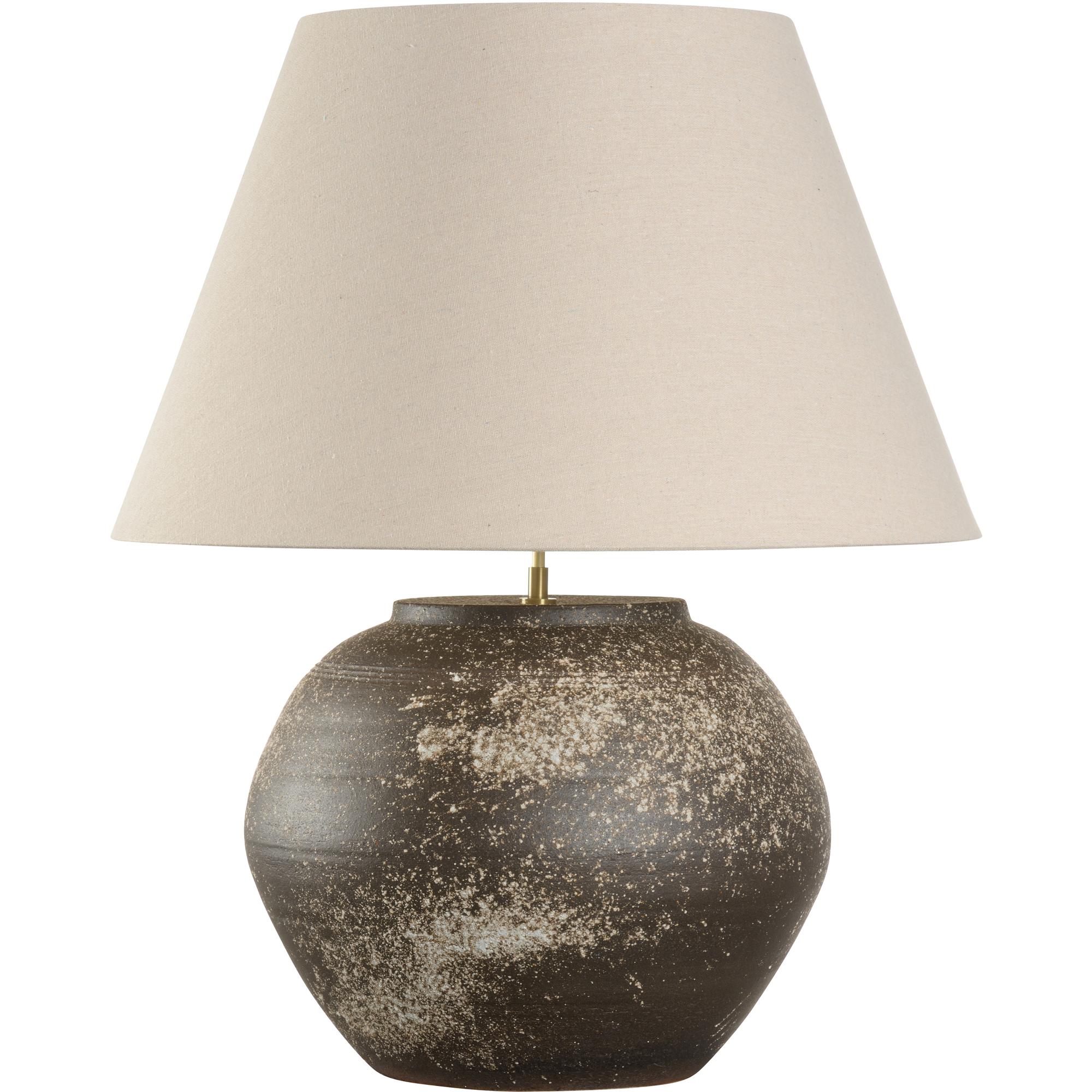 The Mako Table Lamp, part of the Shiga collection, is a striking statement piece that brings artistry and scale to your home. Hand-turned in Japan, this large-scale lamp showcases the unique craftsmanship of the Shigaraki region. The textured ceramic body is finished with a splatter glaze, creating a rugged surface that feels organic and rich with character. Each lamp is a one-of-a-kind creation, making it a true work of art.