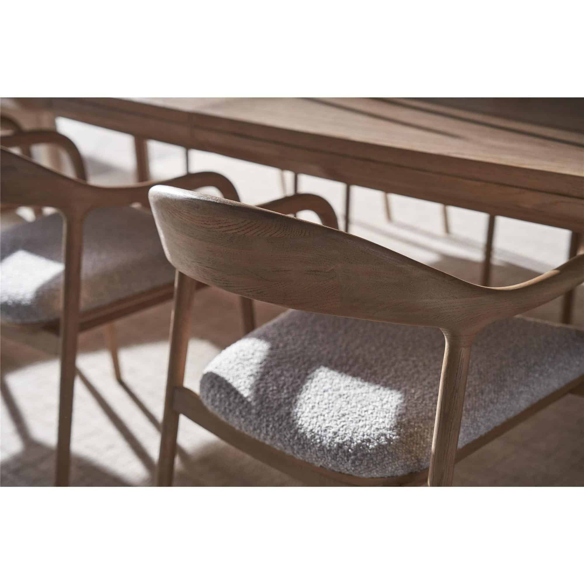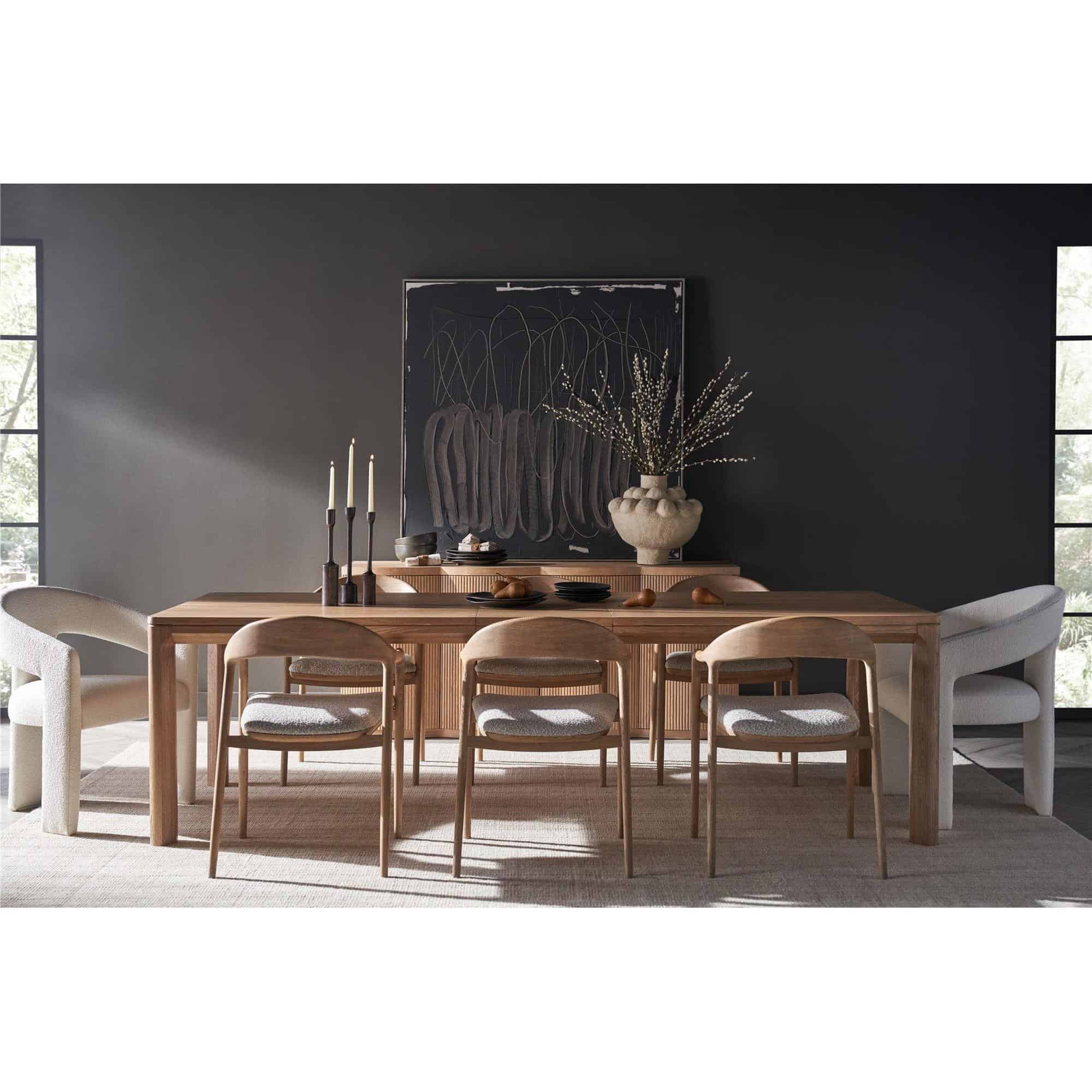 The Malone Dining Table, with its very simple silhouette and narrow legs, is finished in a versatile Natural Oak. Its understated design makes it a perfect complement to a wide spectrum of interior tastes and color schemes, embodying a minimalist elegance that enhances any dining space