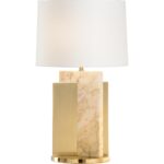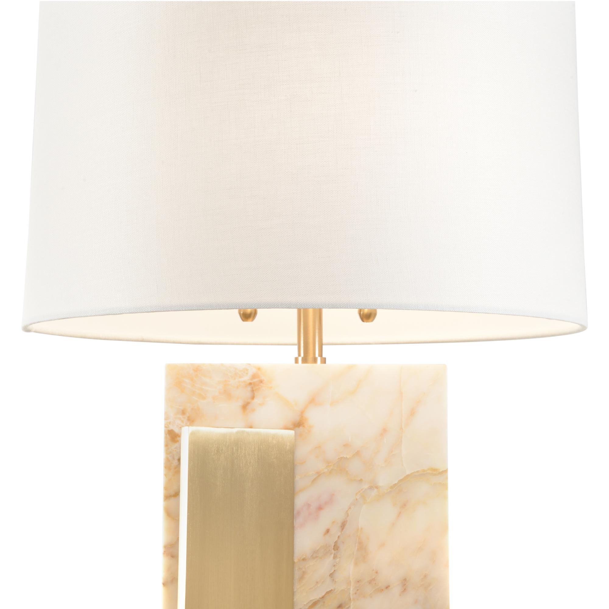Manarola lamp is an exquisite example of how mixed materials can create a stunning accent piece for any space. Two lights illuminate your room and highlight the natural calacatta gold marble with the intricate veining as it intersects a panel of warm coffee bronze finished metal. The neutral color palette carries on top with the off white linen shade, making this lamp ideal for a bedroom or living area.