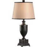 Natural black marble urn with antique bronze patina, solid brass base and accents. Due to the natural nature of this product, color variations and patterns may vary.