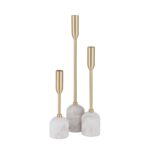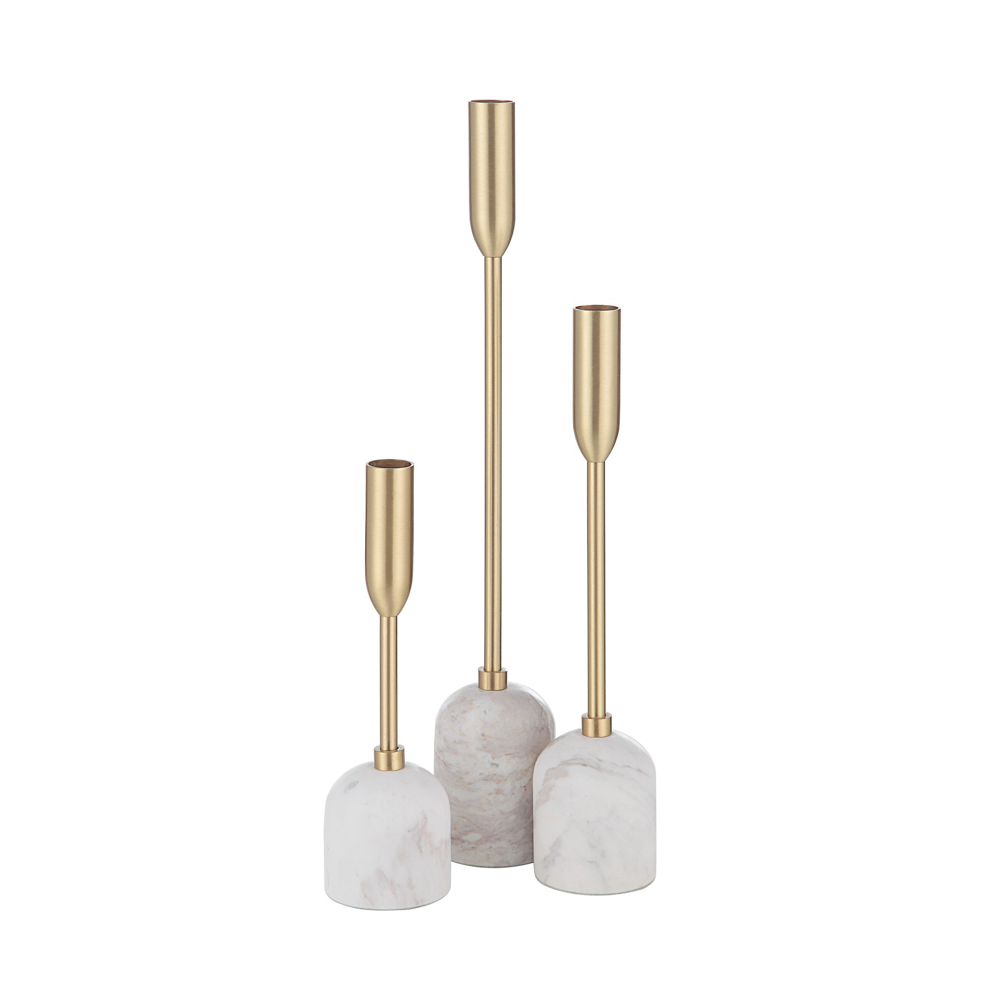 Introducing the Marchesa Iron Decorative Tapered Candle Holder, Satin Brass, the perfect addition to any space for an instant romantic ambiance. Each candle holder is crafted from high-quality iron, ensuring long-lasting reliability for your home decor needs. The stunning plated finish provides an additional layer of protection, keeping the satin brass finish pristine and eye-catching for years to come. Features a unique tapered design of this candle holder adds a superb decorative touch to any setting, making it an excellent centerpiece or accent piece for any space. The stunning two-color blend of satin brass and white creates a blend of modern and traditional style that will complement any decor theme.