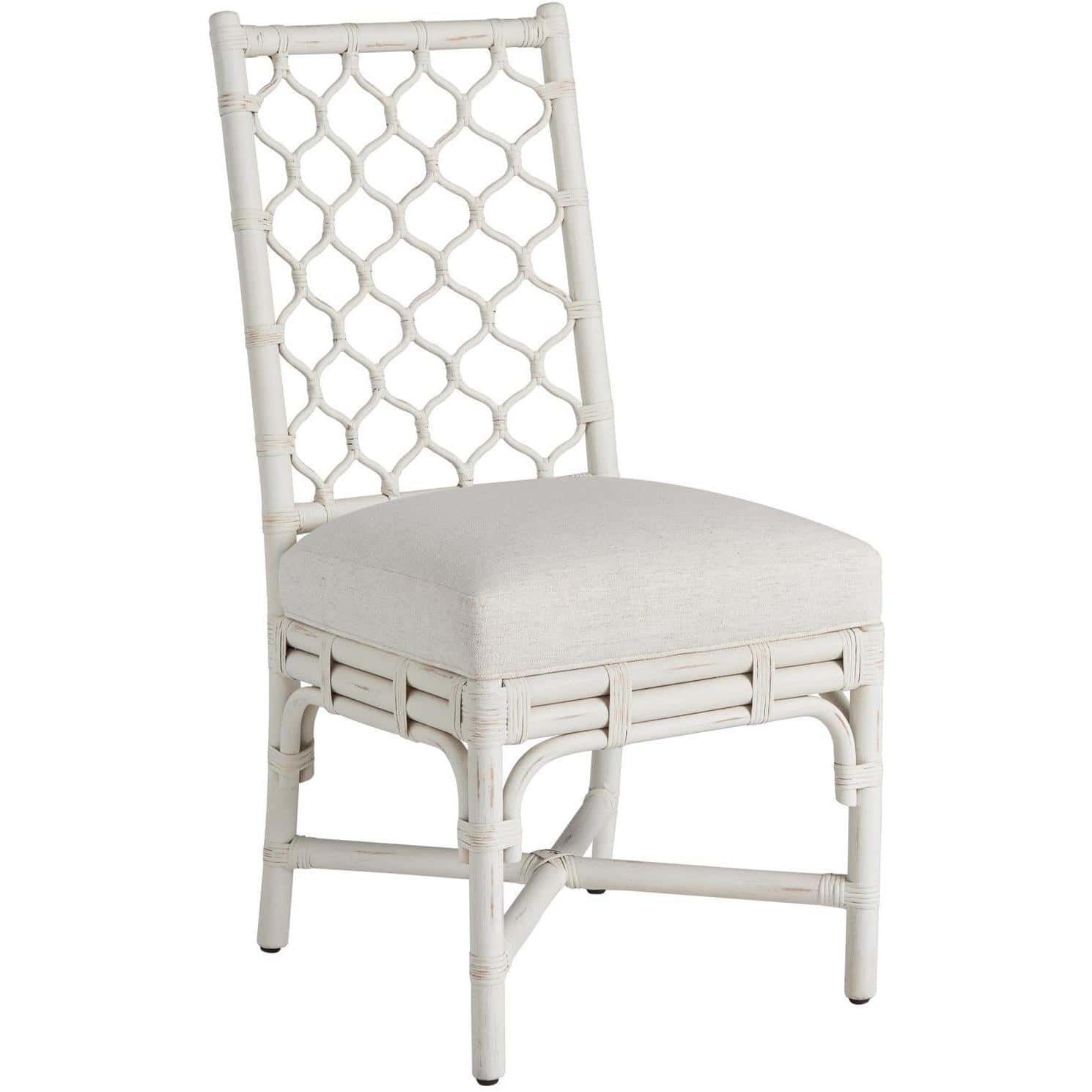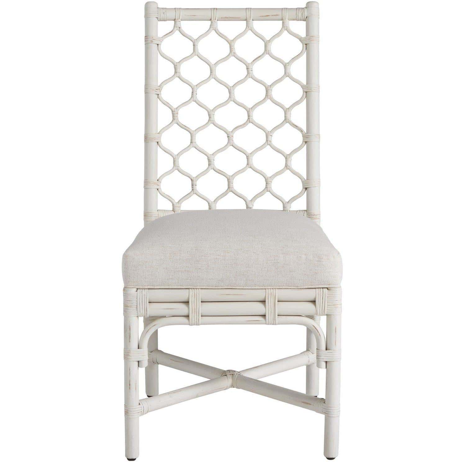 A quintessential quatrefoil pattern defines the Marco Side Chair. A fresh white finish paired with an upholstered seat brings the chair to life.
