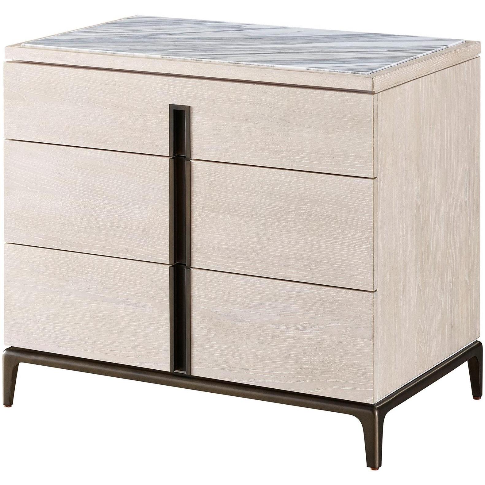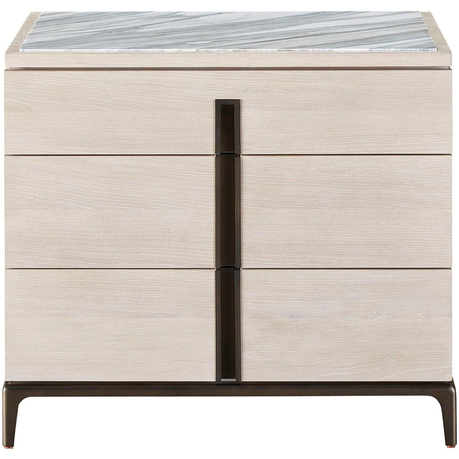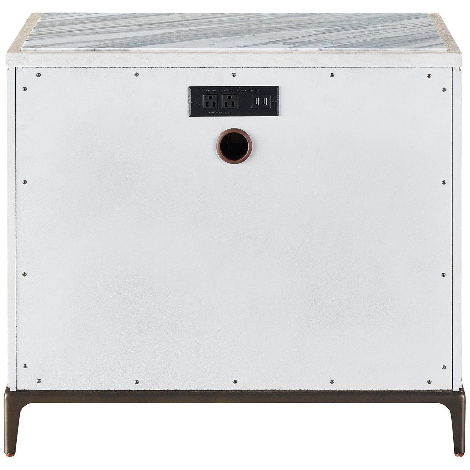 Dazzling white Calacatta marble is the star of the Maren Nightstand, complemented by soft white oak panels and accented with satin bronze hardware and base frame.