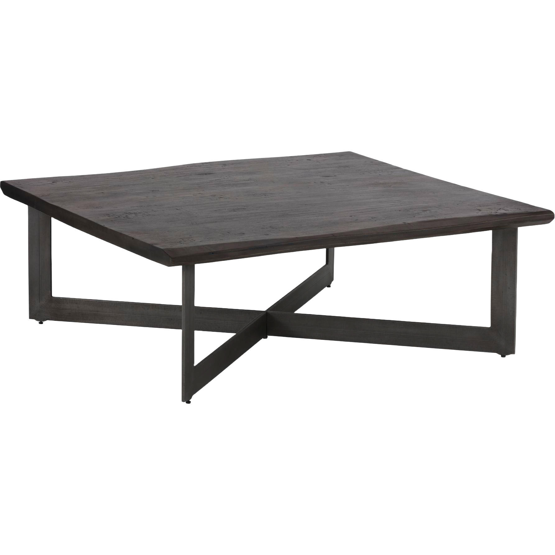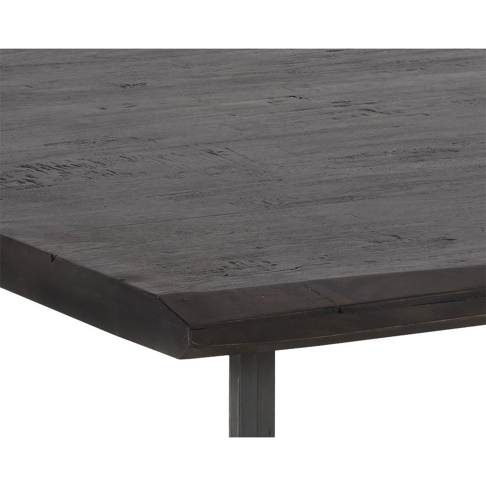 This square coffee table combines rustic and industrial elements perfect for transitional spaces. Featuring a solid acacia wood top in a rich walnut brown finish, with a contrasting antique gunmetal steel base. As wood is an organic, porous material, these pieces will contain natural variation of texture and may also exhibit fine indentations and cracks. Wood pieces will also display a disparity of colour and grain, and visible knots and burls that add to the character of each piece.