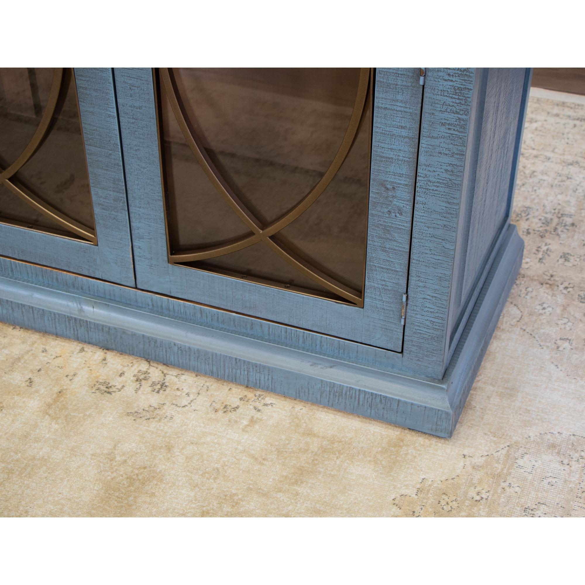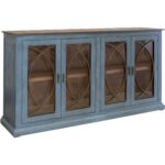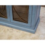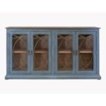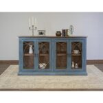 - Two-tone, multi-step lacquer finish. Translucent blue on the body and natural brown on top and legs.