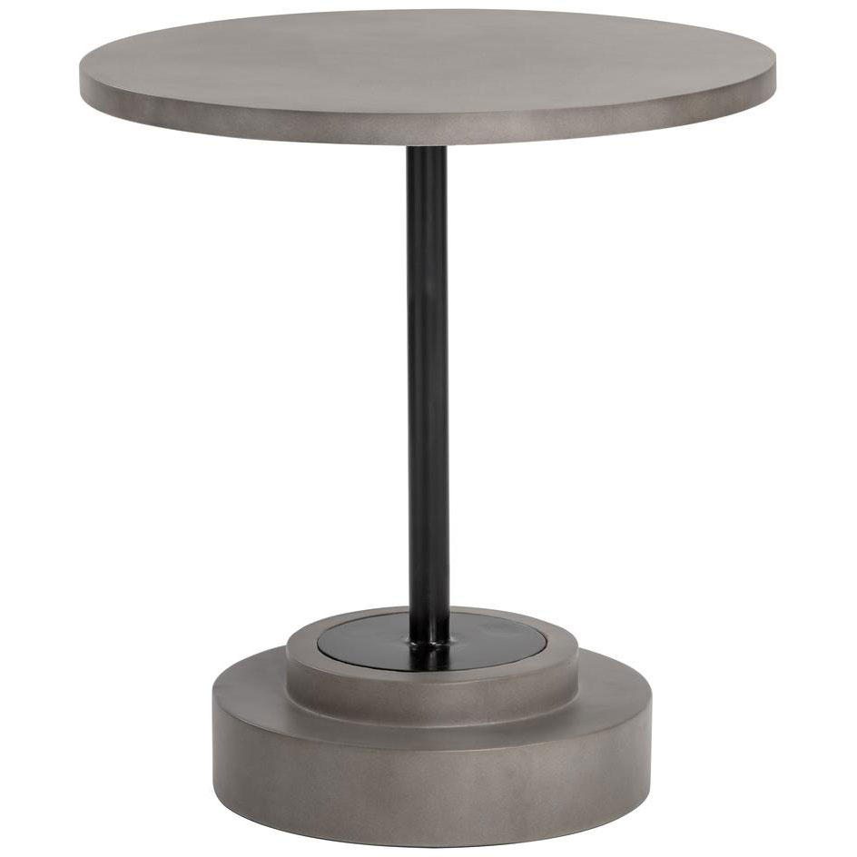 Complete an industrial space with this round bistro table. Designed with a concrete top and base with a supporting black steel frame. The perfect addition to small kitchen and dining spaces.