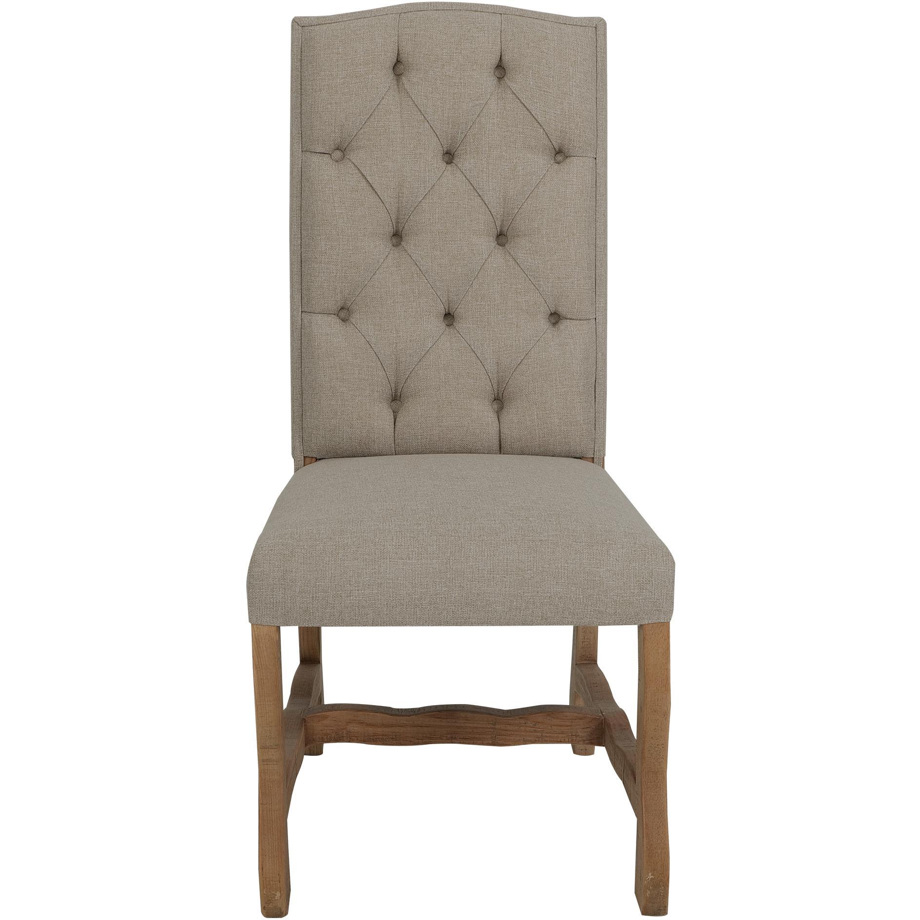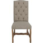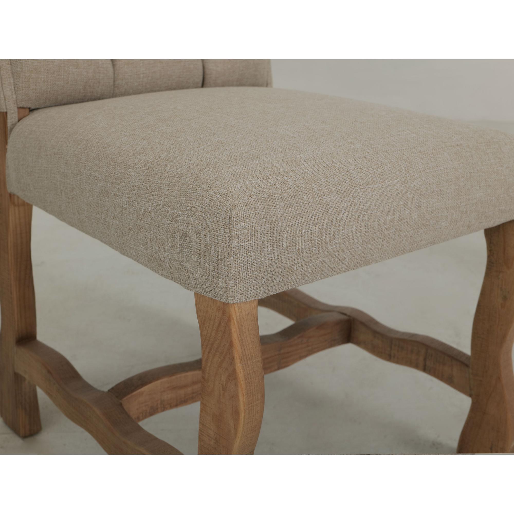 Inspired by farmhouse style, our Marquez upholstered chair with a tufted backrest is designed to complement your space, adding a classic touch. The frame is crafted from solid pine wood, and it features curved legs for a rustic look