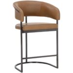 Uniting the beauty of sleek modern design with timeless elegance, the Marris Counter Stool is a great addition to any dining space. Stocked in smooth milliken cognac faux leather and completed with a cantilever frame in a gunmetal stainless steel finish. Handle With Care: This design has been crafted with faux leather. Faux leather is manufactured to reflect the natural characteristics of leather; as such, colour variations, markings, wrinkles, grooves, and light scratches are appreciated characteristics. No two pieces will be alike. Visit our Product Care page for more information on how to ensure the lasting beauty of this piece.