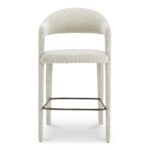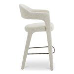 Pull up, stay awhile. Martens pairs an open barrel back with a continuous curve that runs from leg to frame, so the silhouette feels light but grounded. Beige polyester upholstery covers generously padded foam for sit-long comfort, while subtle armrests add just enough structure for polished gatherings. A slim metal frame keeps the look uncluttered and easy to style. Perfect for quick breakfasts, long chats, and everything in between. An easy upgrade your island needs.