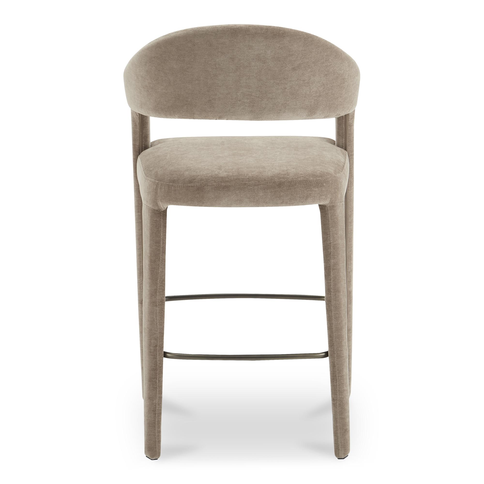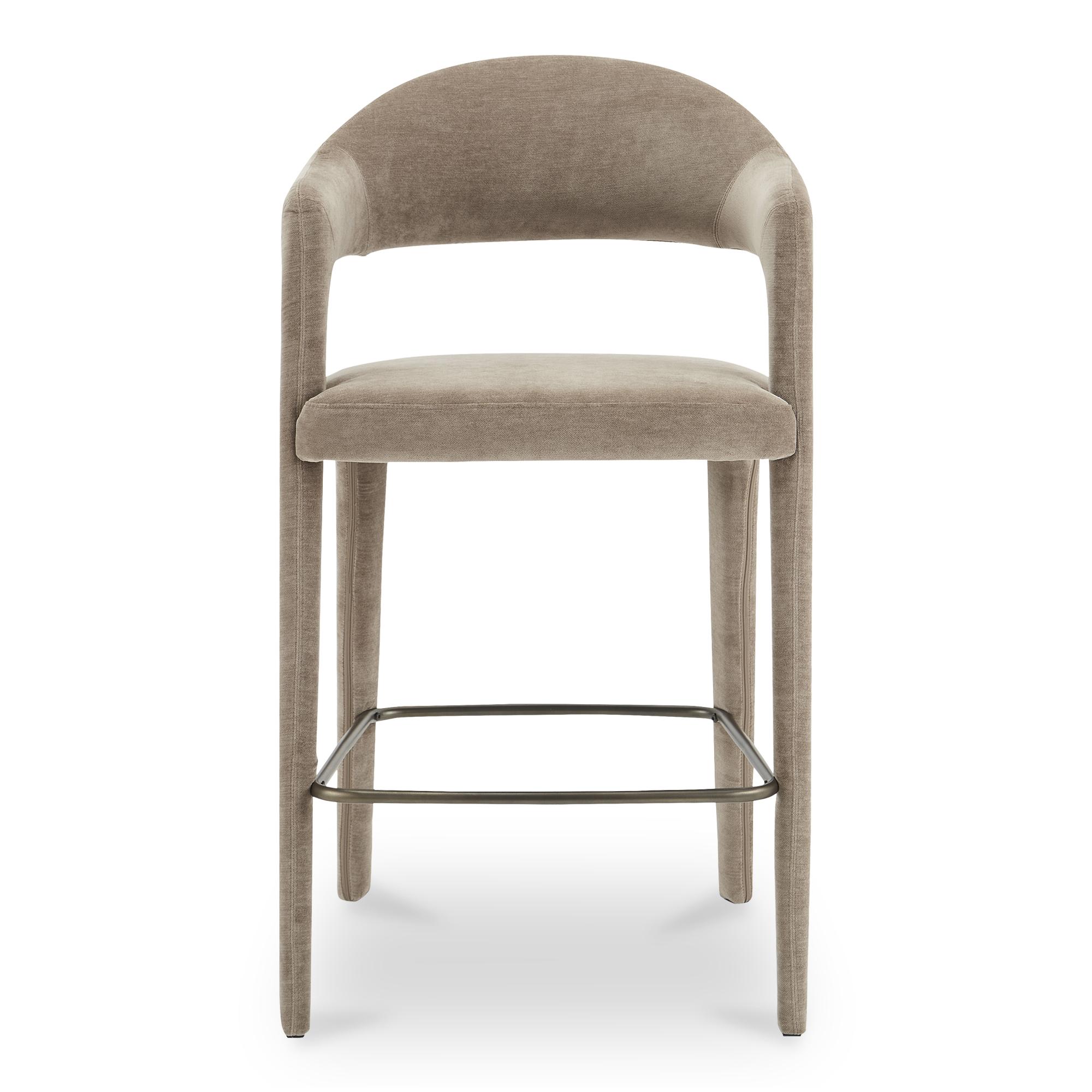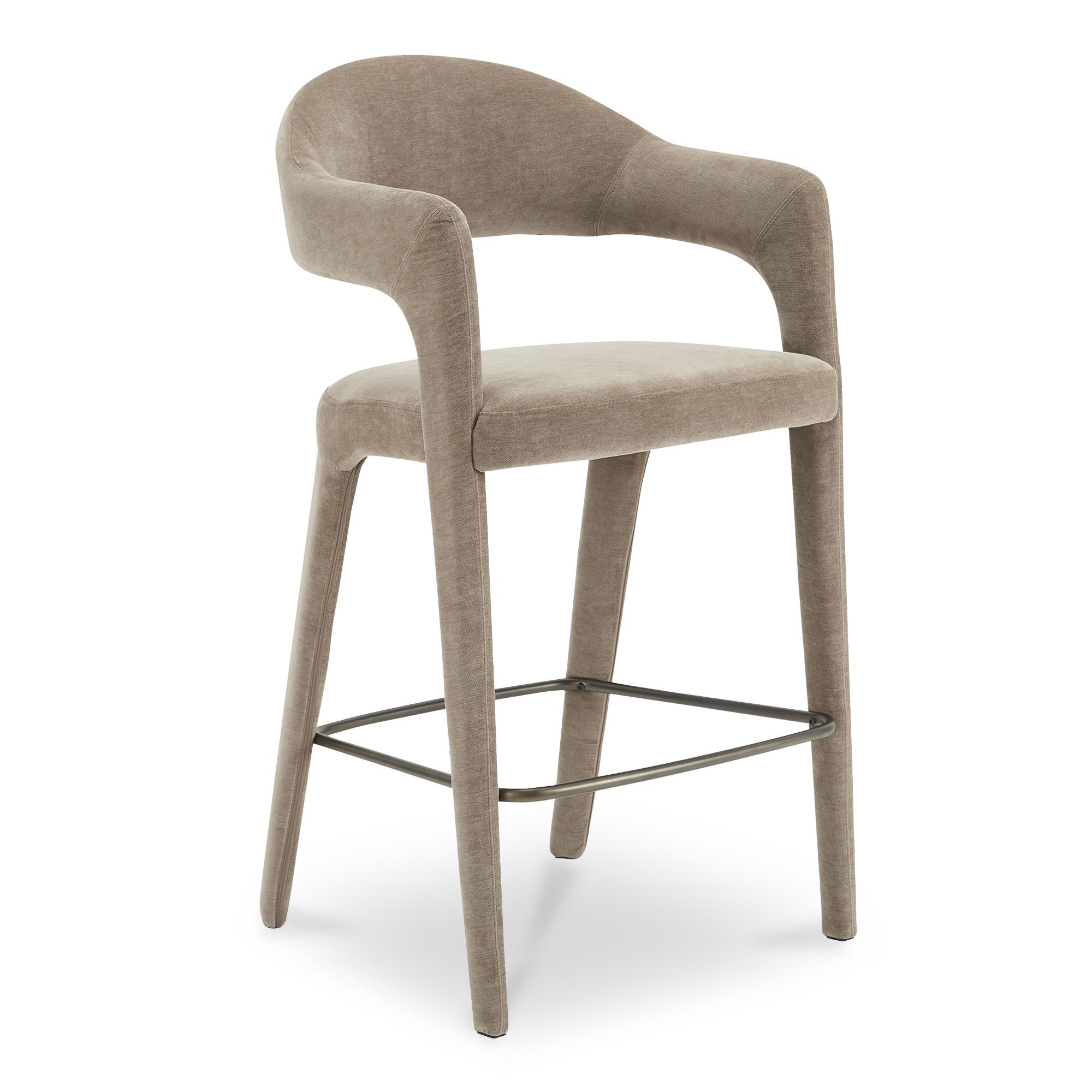 Pull up, stay awhile. Martens pairs an open barrel back with a continuous curve that runs from leg to frame, so the silhouette feels light but grounded. Camel polyester upholstery covers generously padded foam for sit-long comfort, while subtle armrests add just enough structure for polished gatherings. A slim metal frame keeps the look uncluttered and easy to style. Perfect for quick breakfasts, long chats, and everything in between. An easy upgrade your island needs.