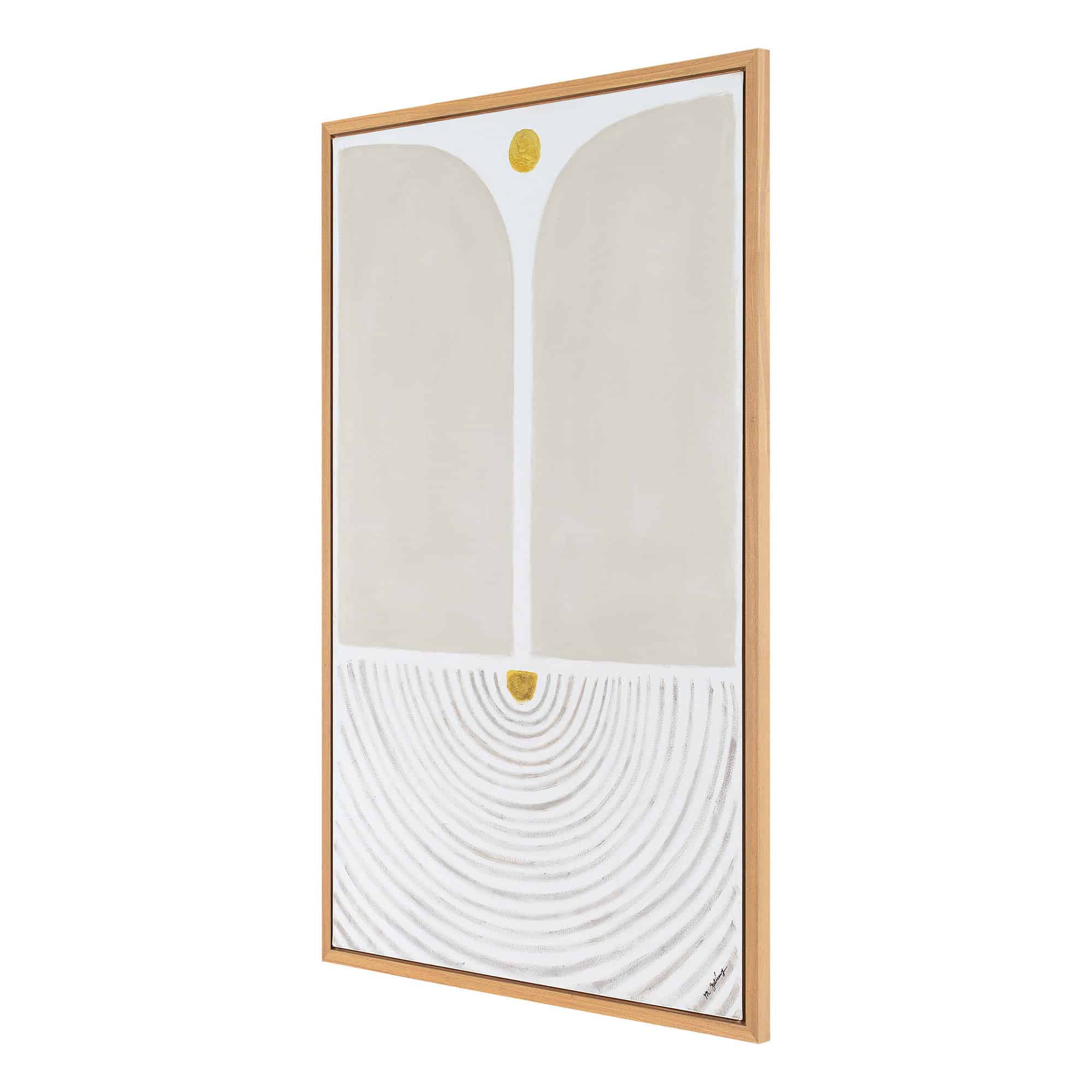 The beauty of a detailed graphic design takes center stage in this work of art. Showcasing a palette of soft beige hues, the intricate details in this piece make a bold impression on the interior while maintaining a calming air. Set in a hallway, home office or living space, this canvas painting pairs well with both organic-influenced wood furnishings and smooth metal structures.