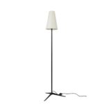 The Mathis floor lamp embodies mid-century elegance with its slender silhouette and tripod base. A vintage-inspired metal stand supports a tapered linen shade, diffusing a soft, inviting glow adding understated sophistication, whether illuminating a reading nook or anchoring a living space.