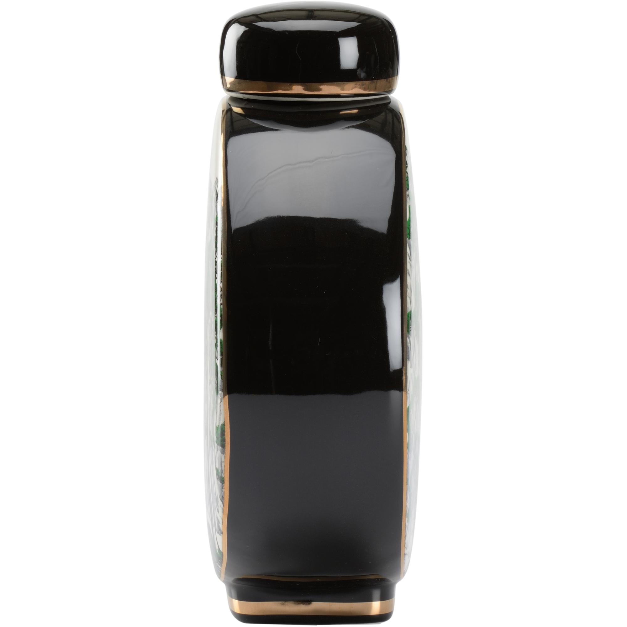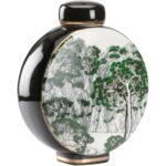 Perfect for tabletops and book shelves in any home, matsu vase brings a chinoiserie style to your decor. Featuring an exquisite green and white landscapre motif decal, this decorative vase is made of ceramic with a removable lid.