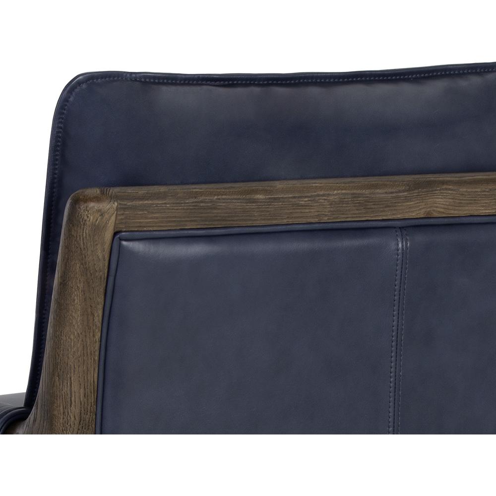 A beautiful mid-century modern lounge chair crafted with high quality materials. Features a seat upholstered in cortina ink leather paired with an exposed distressed brown solid oak wood frame. Handle with Care: This design has been crafted with 100% top grain leather. Leather is a natural material; as such, colour variations, markings, wrinkles, grooves and light scratches are acceptable and appreciated characteristics. No two pieces are alike. Visit our Product Care page for more information on how to ensure the lasting beauty of this piece. As wood is an organic, porous material, these pieces will contain natural variation of texture and may also exhibit fine indentations and cracks. Wood pieces will also display a disparity of colour and grain, and visible knots and burls that add to the character of each piece.
