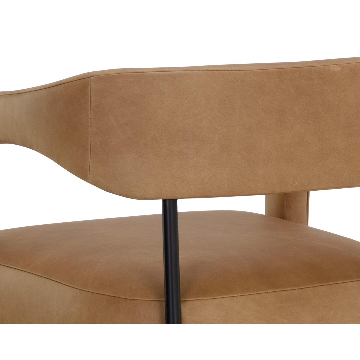 Perfectly poised, the Mavia Barstool brings a cool modern edge to any dining area. Our stunning ludlow sesame leather is wrapped around the seat, armrests and front legs while the rest of the matte black powder-coated frame remains exposed. Handle with Care: This design has been crafted with 100% top grain leather. Leather is a natural material; as such, colour variations, markings, wrinkles, grooves and light scratches are acceptable and appreciated characteristics. No two pieces are alike. Visit our Product Care page for more information on how to ensure the lasting beauty of this piece.