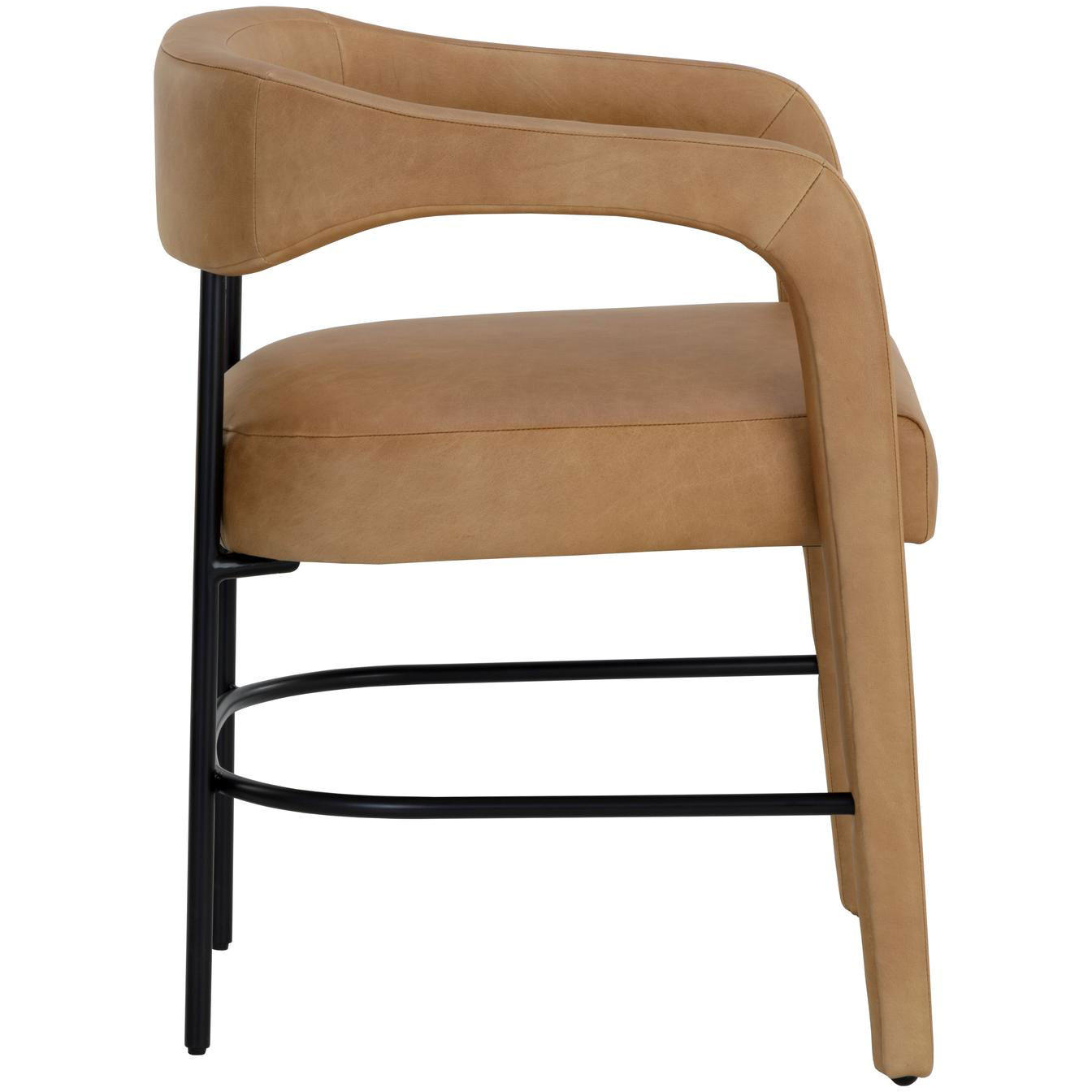 Perfectly poised, the Mavia Dining Armchair brings a cool modern edge to any dining area. Our stunning ludlow sesame leather is wrapped around the seat, armrests and front legs while the rest of the black powder-coated frame remains exposed. Handle with Care: This design has been crafted with 100% leather. Leather is a natural material; as such, colour variations, markings, wrinkles, grooves and light scratches are acceptable and appreciated characteristics. No two pieces are alike. Visit our Product Care page for more information on how to ensure the lasting beauty of this piece.