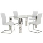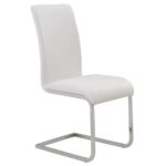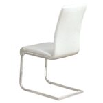 Contemporary style chair with chromed metal frame and faux leather seat. Available in black or white faux leather, the subtle curves on the chair back and seat provide plenty of comfort. Perfect for a dining set or even as accent seating.