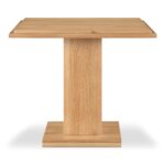 The May cafe table’s unique double square top and rectangular post leg create an intriguing visual harmony. Crafted from solid oak, the table exudes warmth and natural beauty. Subtle curves and angled edges offer ergonomic comfort, inviting lingering moments, effortlessly transitioning from cafe table to entryway accent.