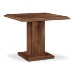 The May cafe table’s unique double square top and rectangular post leg create an intriguing visual harmony. Crafted from rich walnut, the table exudes warmth and natural beauty. Subtle curves and angled edges offer ergonomic comfort, inviting lingering moments, effortlessly transitioning from cafe table to entryway accent.