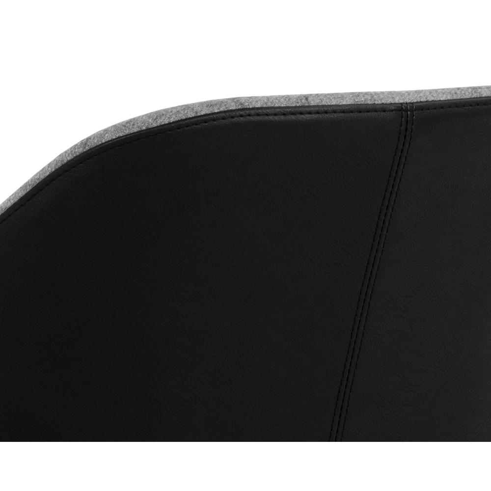 This swivel dining chair exudes masculine charm. Features a sculpted two toned seat in november grey fabric with a nightfall black faux leather exterior. Tapered black steel legs create a bright and airy look. Also available in cinnamon brown faux leather exterior. Suitable for various dining, kitchen and bar spaces of all sizes. Handle With Care: This design has been crafted with faux leather. Faux leather is manufactured to reflect the natural characteristics of leather; as such, colour variations, markings, wrinkles, grooves, and light scratches are appreciated characteristics. No two pieces will be alike.