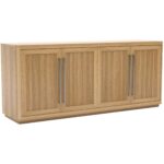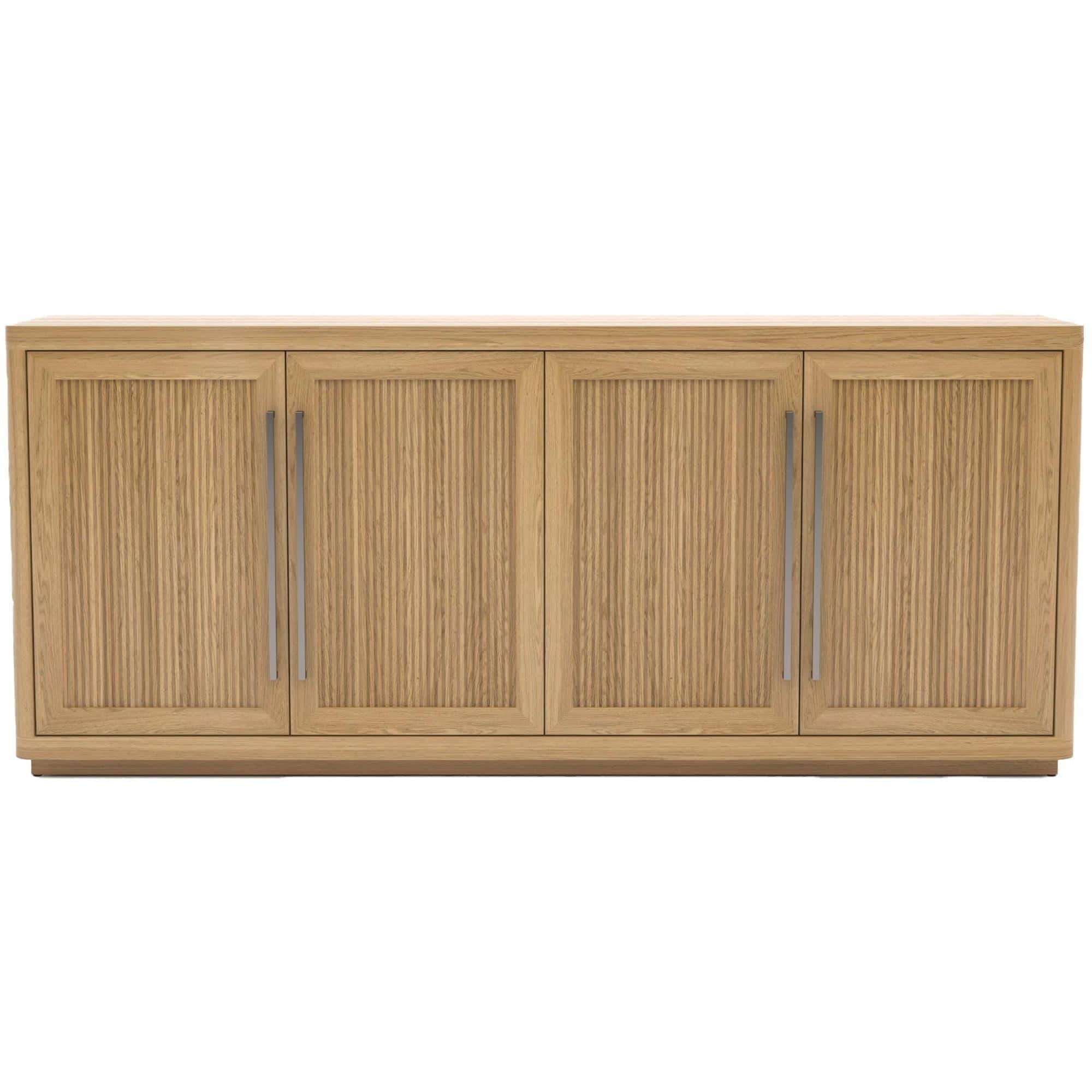 The Media Credenza is the perfect blend of functionality and style. With four doors and four adjustable shelves this piece offers versatile storage while maintaining a sleek look. Finished in Natural Oak, it adds a touch of warmth to any space.
