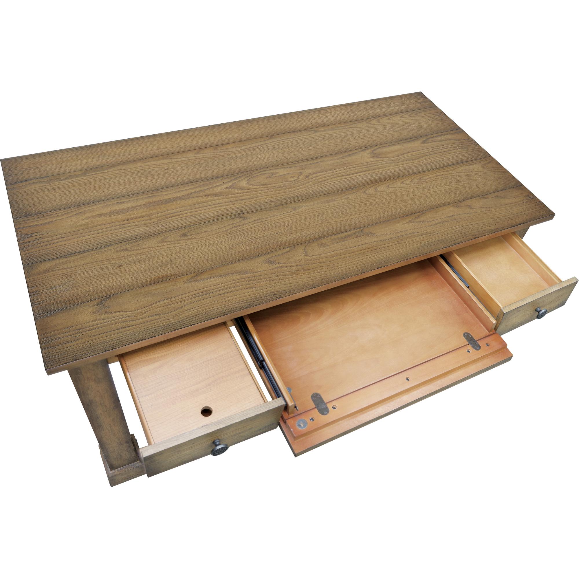 Features: Center drawer with drop-front for keyboard use