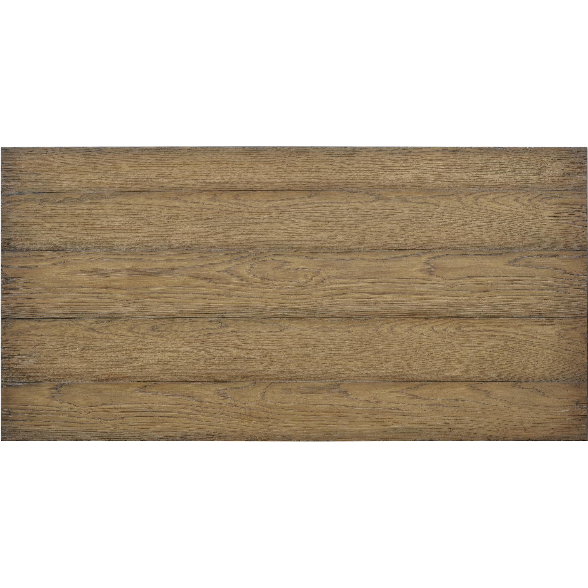 Finish: Light wood finish over oak veneers. Distressing includes worm holes.