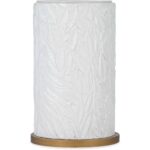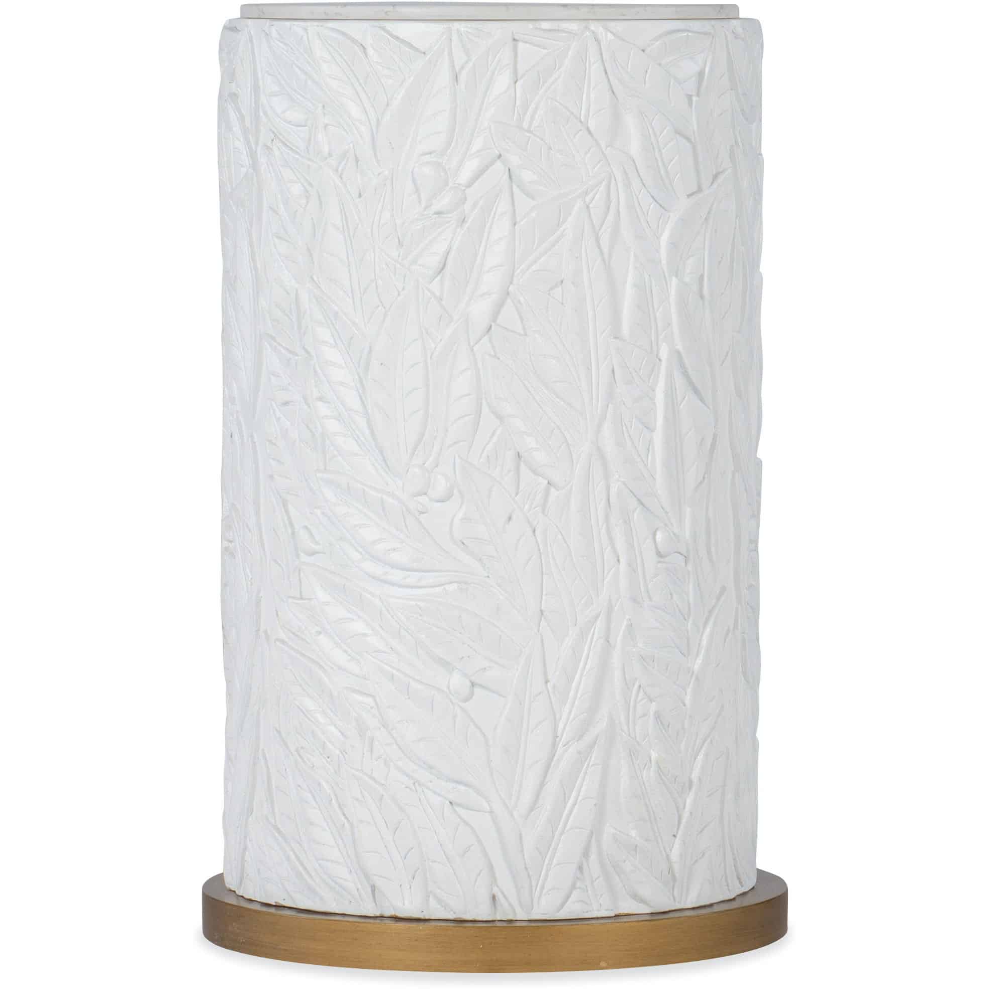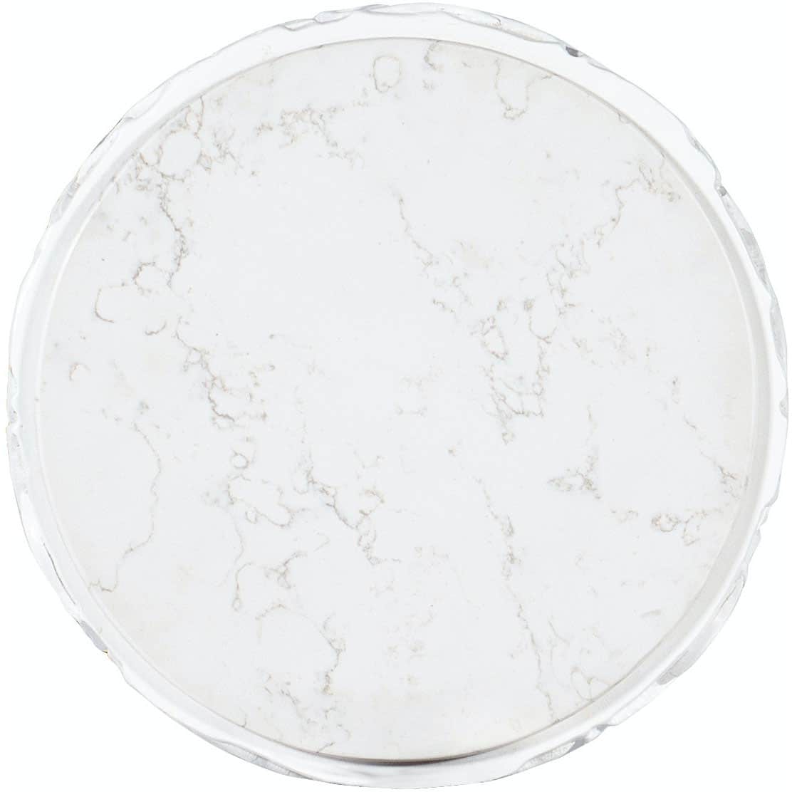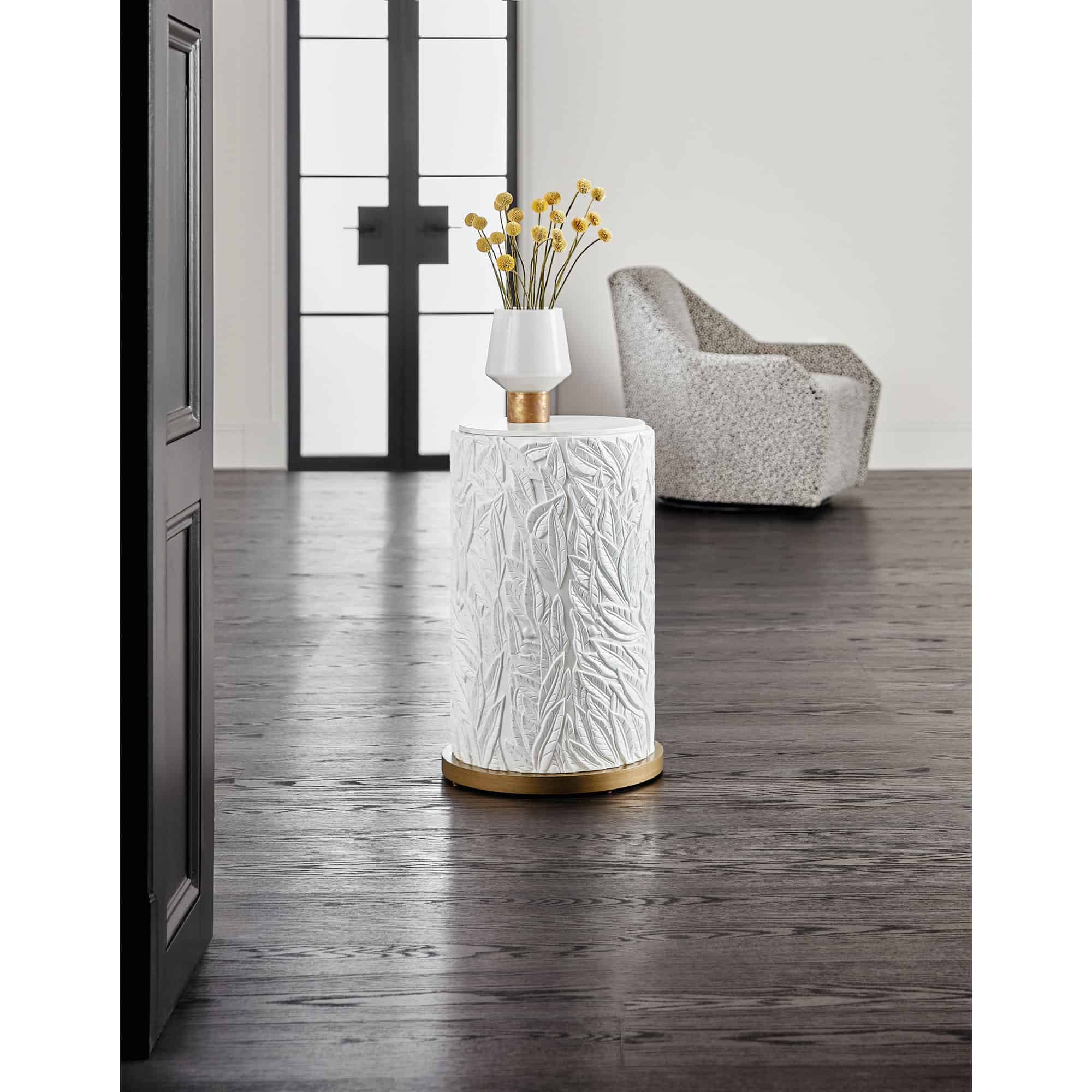 - Finish: White quartz top with white leaf motif and brushed gold base