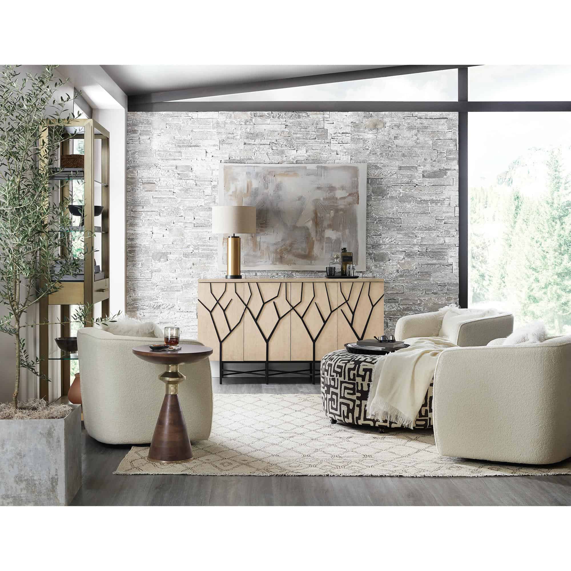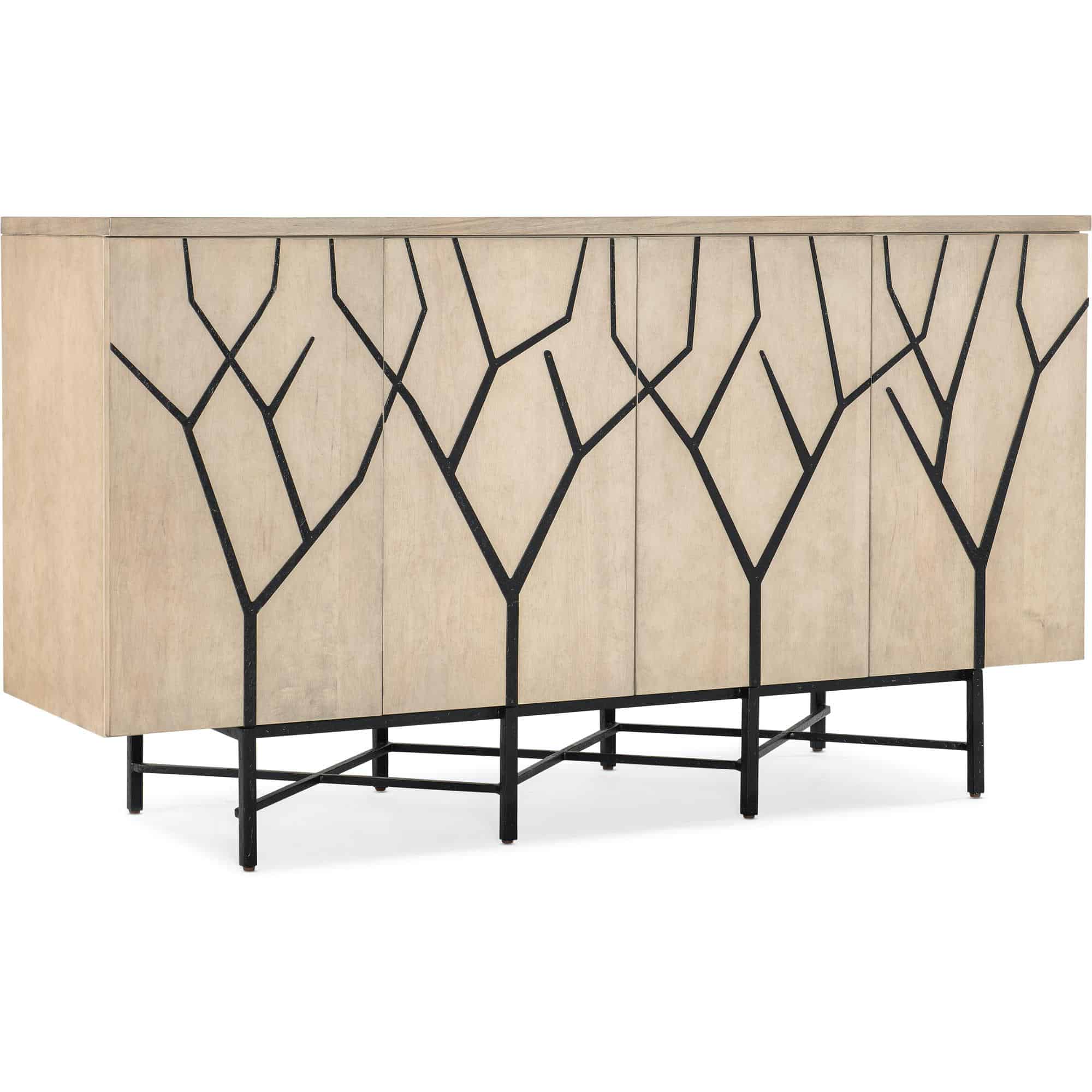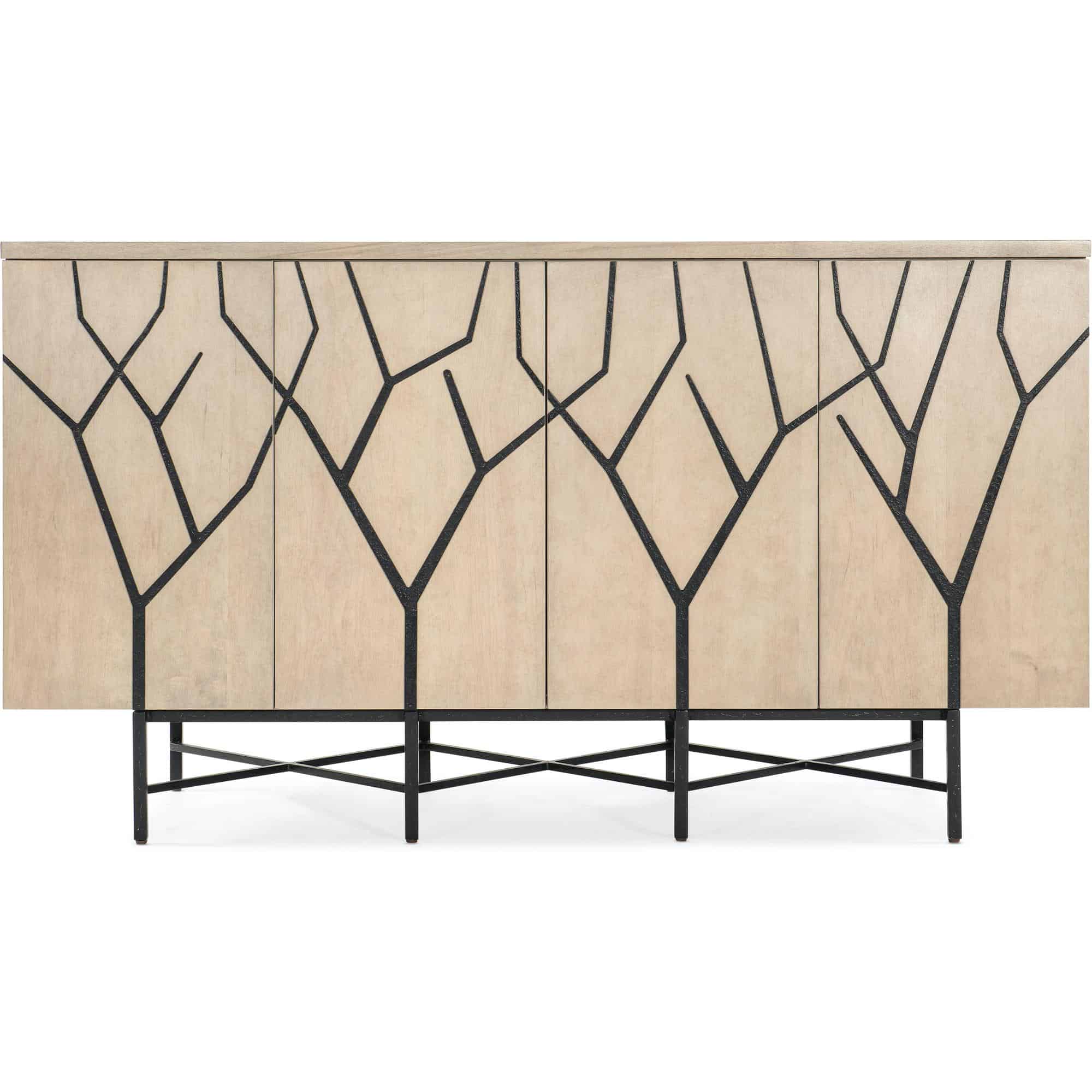 Finish: Light wood finish with black metal base and twig motif