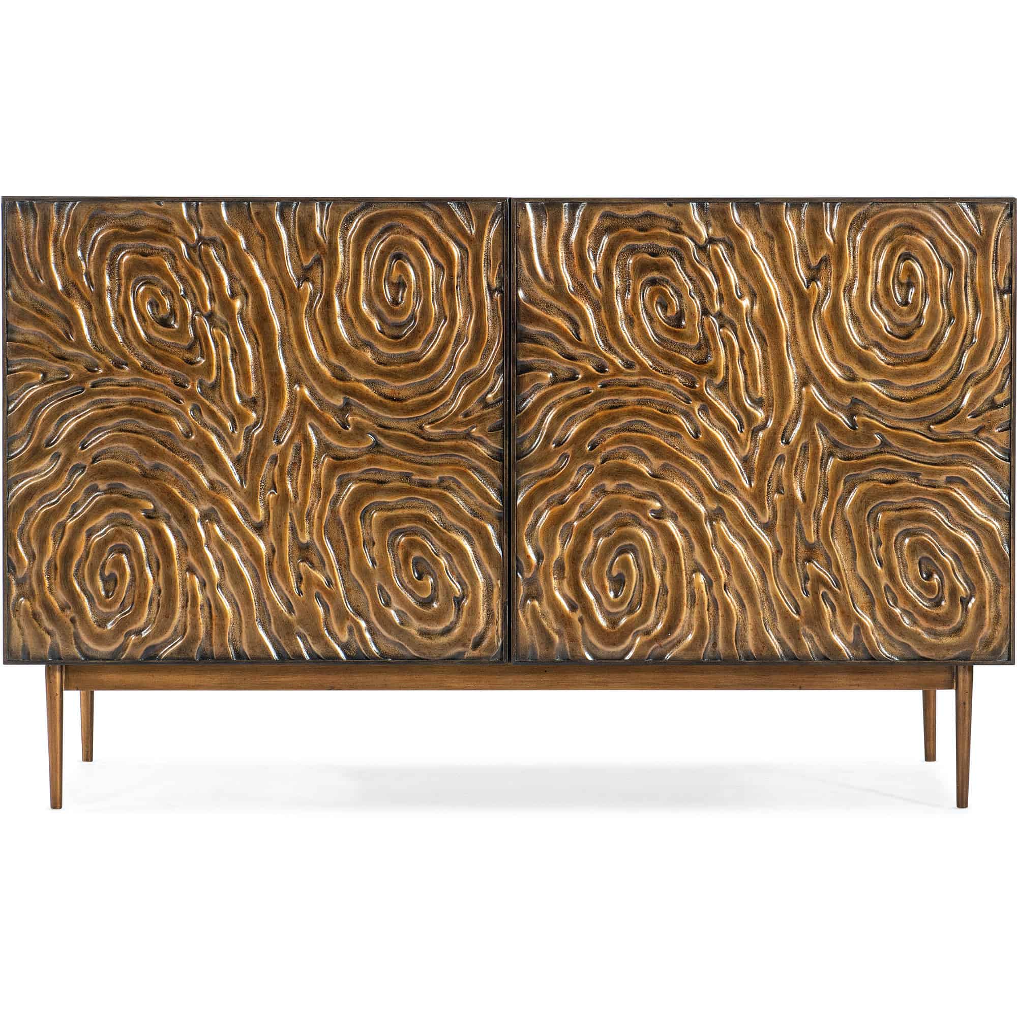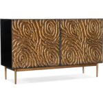 Finish: Black finish on top, sides and interior contrast with the bronze gold color door fronts and metal legs