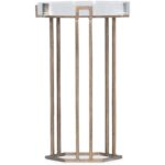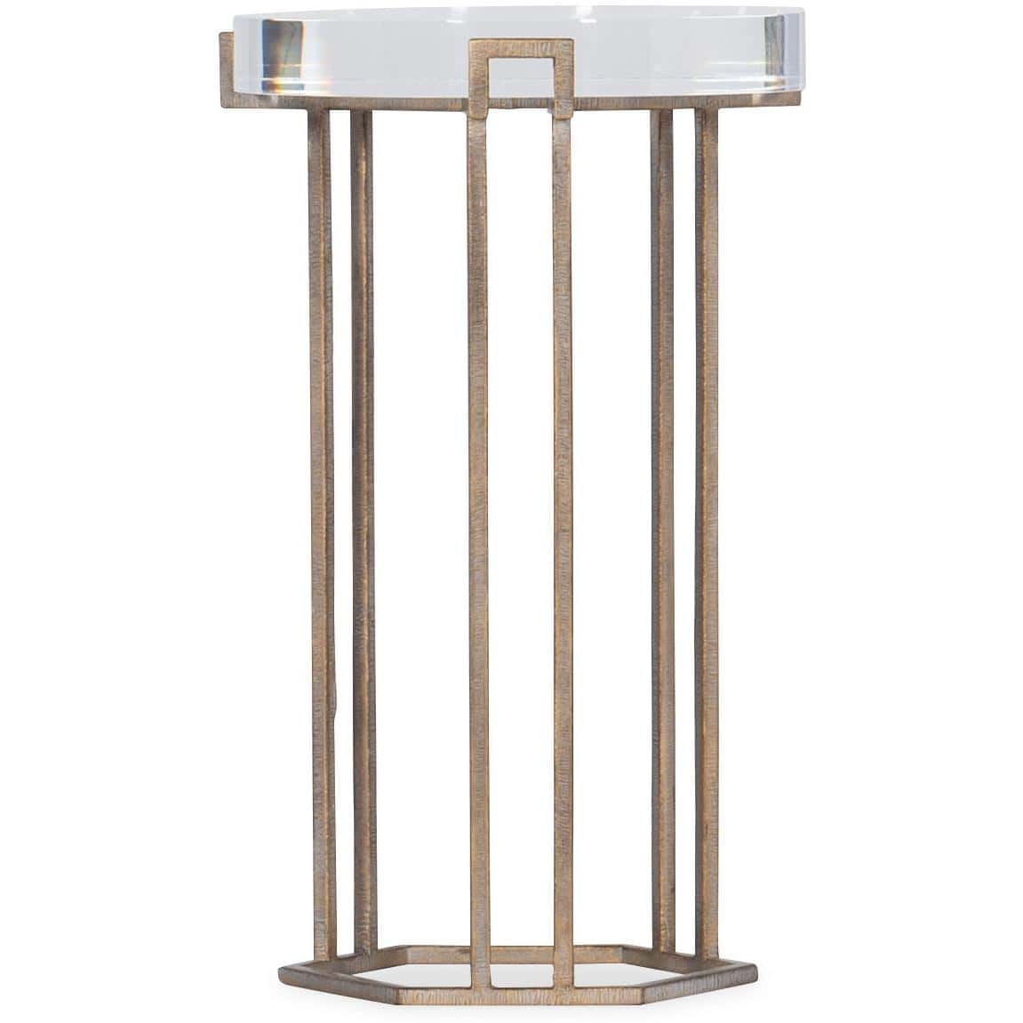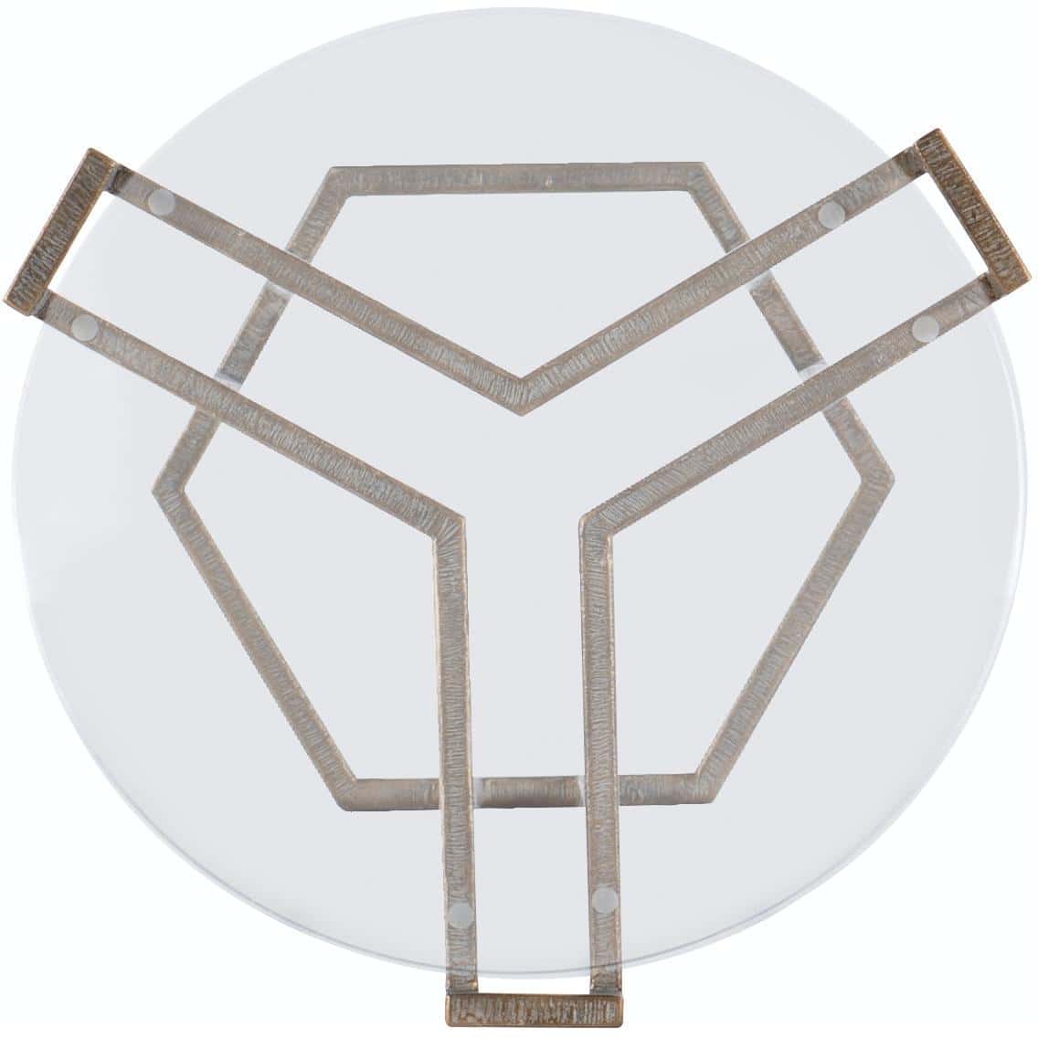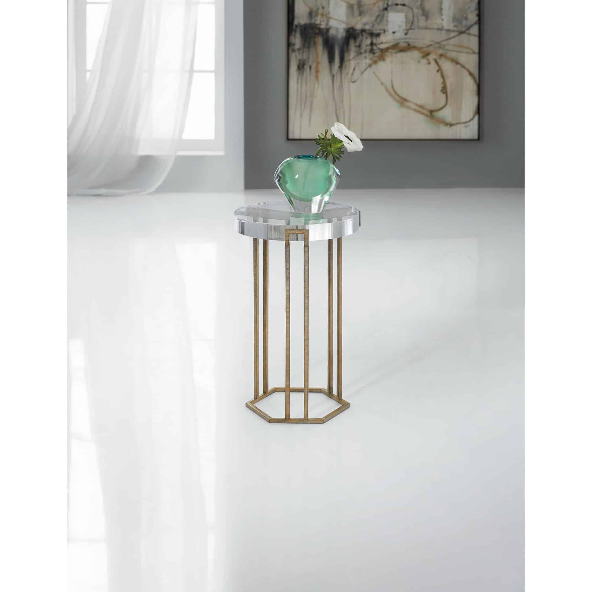 - Finish: Textured metal base in antique brass finish with clear acrylic top