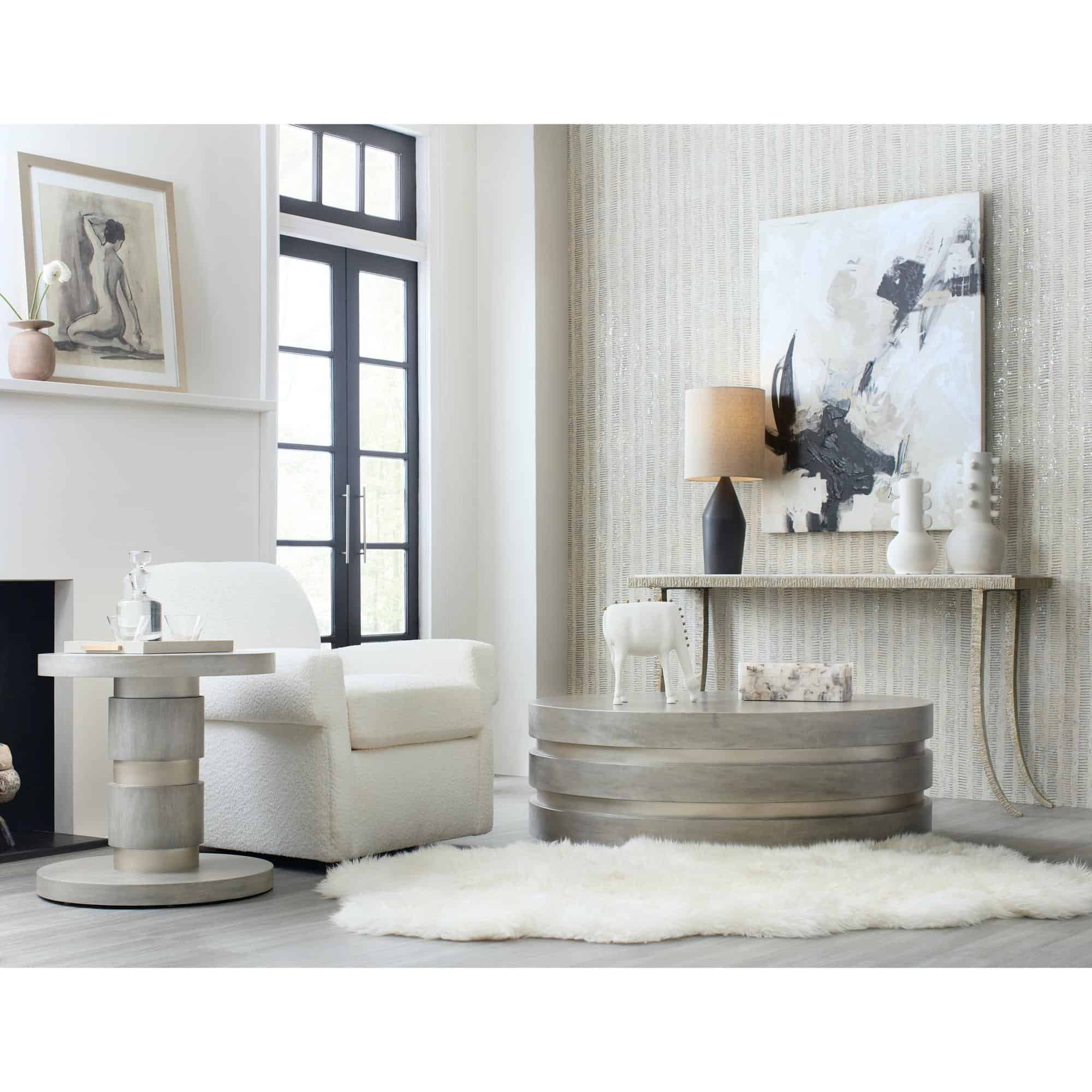 - Finish: Gray finished primavera veneers with silver leaf accents on stepped insets