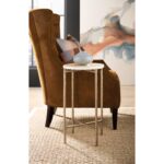 - Finish: Gold metal table base with natural stone top