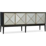 Features: Four doors with antique glass and gold/silver fretwork
