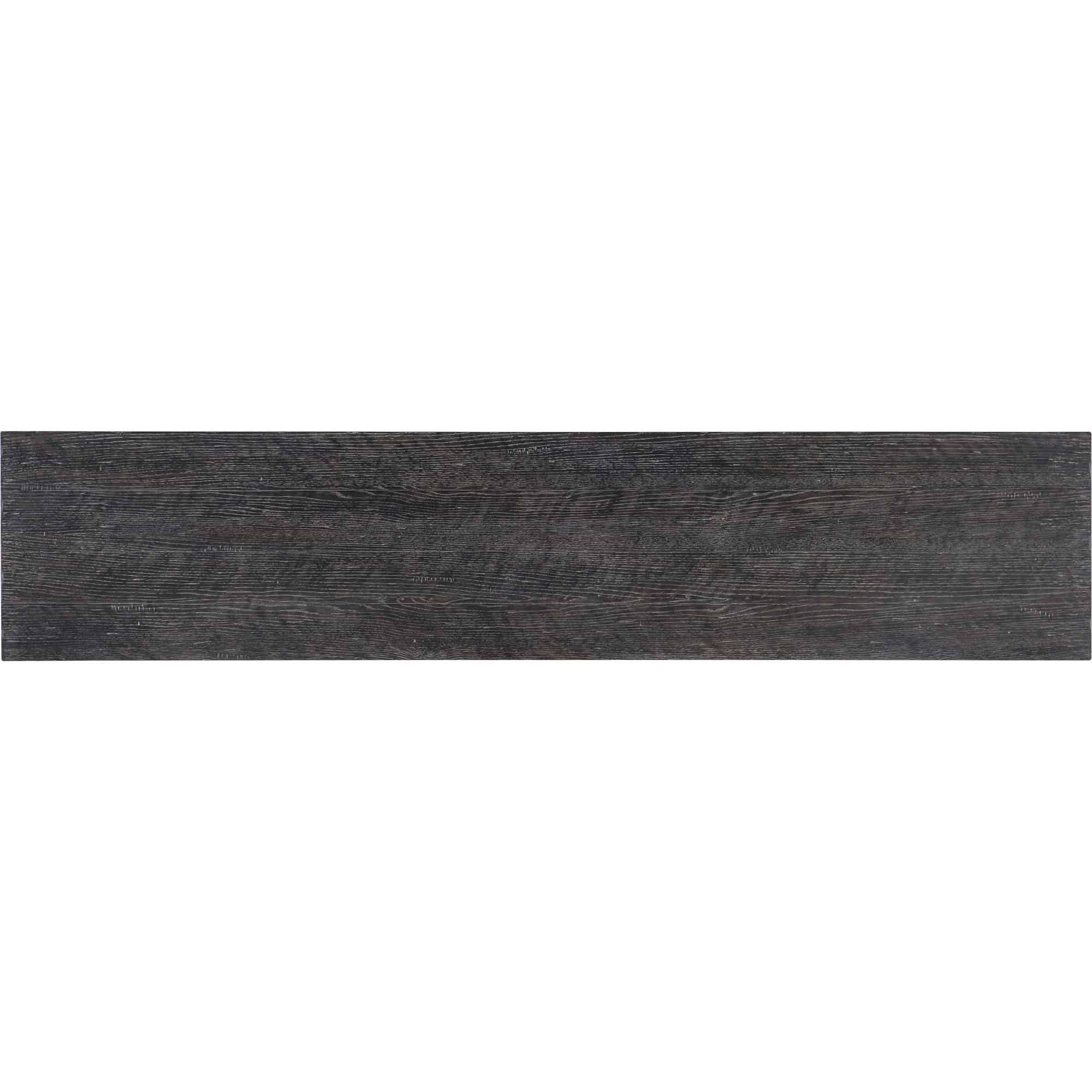 Finish: Dark wood finish with silver metal base and distressed metal rectangle hardware.