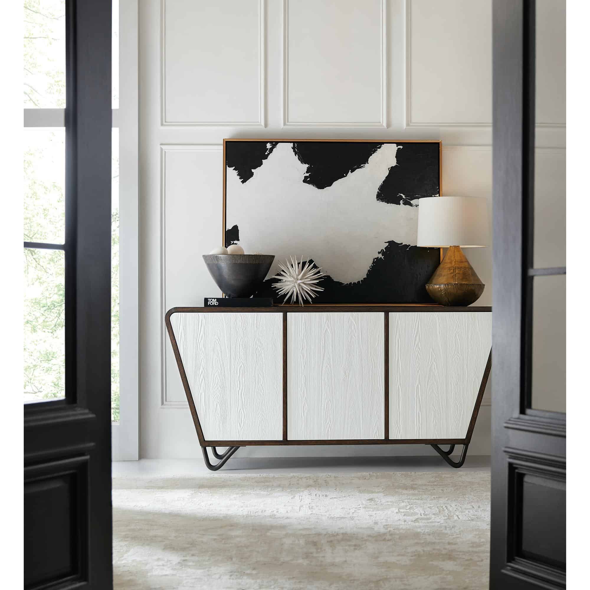 Features: Three doors with soft-close hinges and magnetic door catches One adjustable shelf behind each door Ventilated back panel Metal base Rounded corners Levelers FC705 Three plug electrical outlet located behind center door
