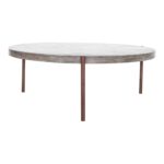 Mendez is a 3′ round table with a light-weight fiber-stone top and thin steel legs. A freshly modern look.