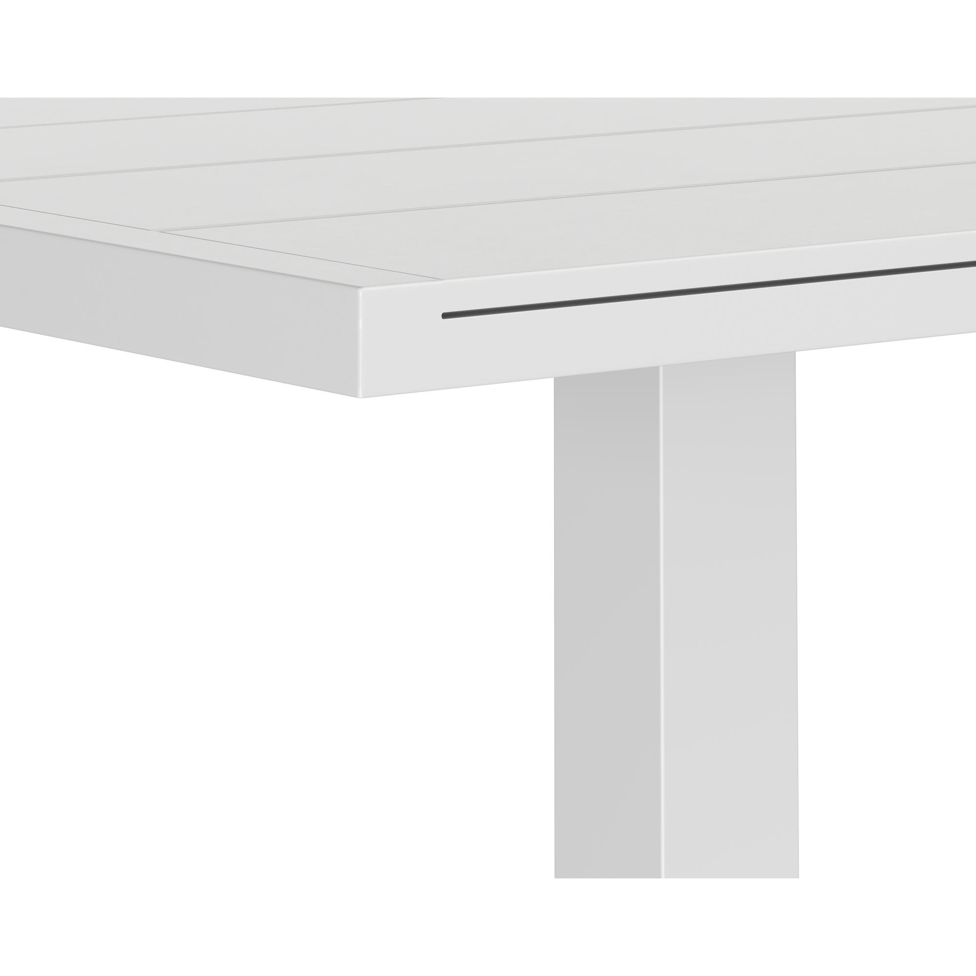 The Merano Bistro Table is a modern take on classic design. Sleek lines define its striking silhouette. Constructed from white powder coated aluminium with a slatted table top.