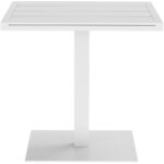 The Merano Dining Table is a modern take on classic design. Sleek lines define its striking silhouette. Constructed from white powder-coated aluminium with a slatted table top.