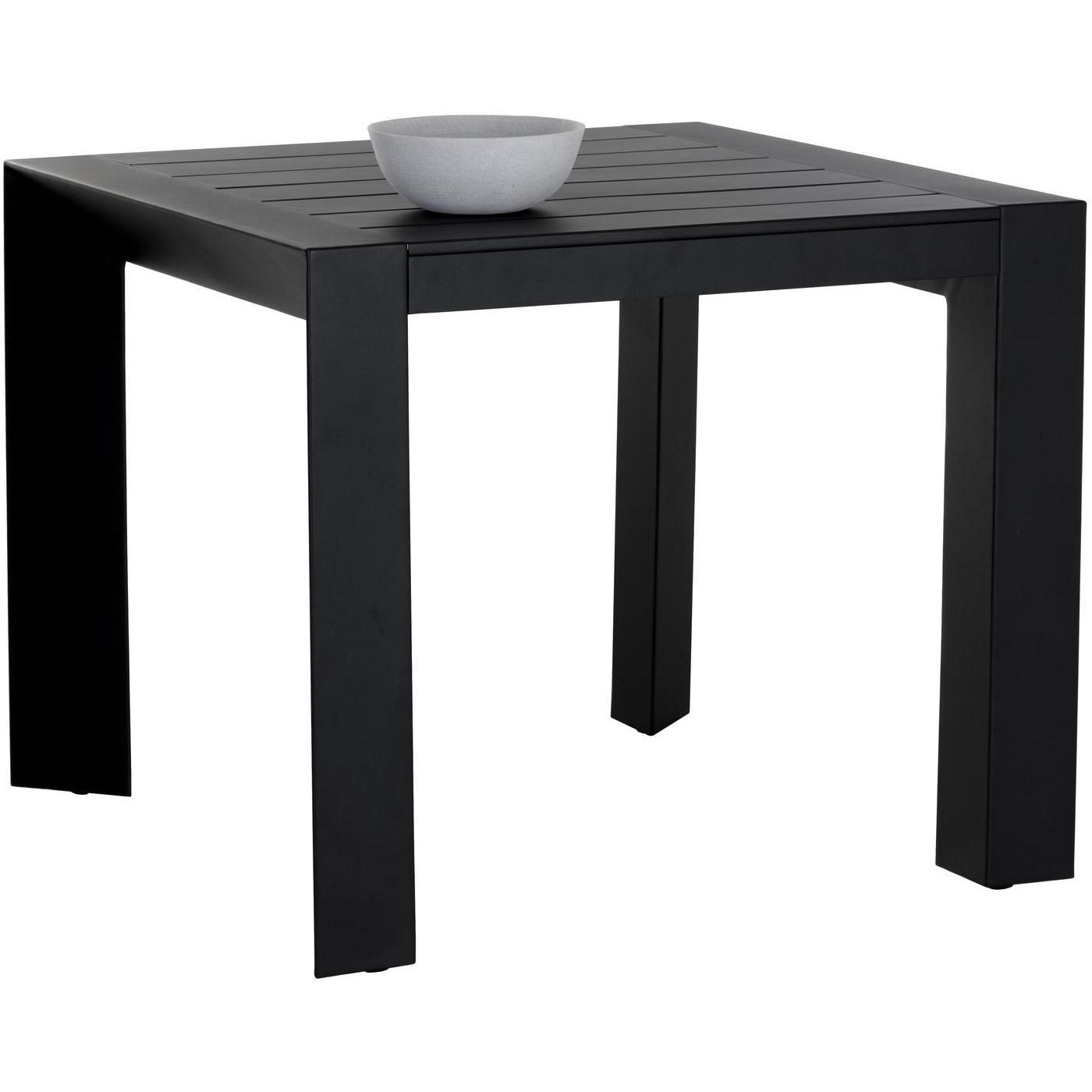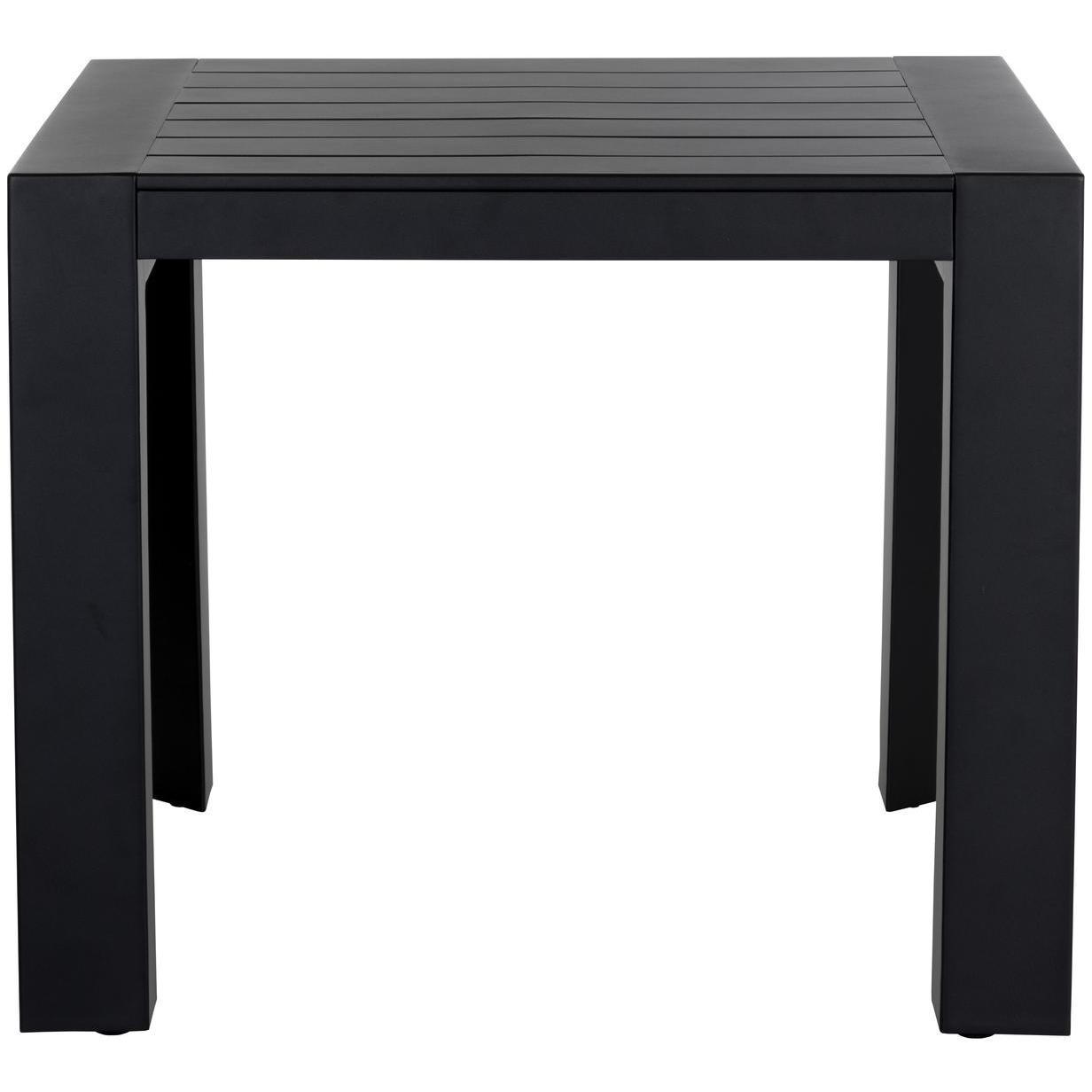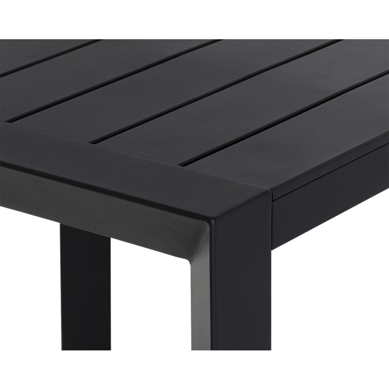 The Merano Dining Table is a modern take on classic design. Sleek lines define its striking silhouette. Constructed from black powder-coated aluminium with a slatted table top. Suitable for indoor and covered outdoor spaces.