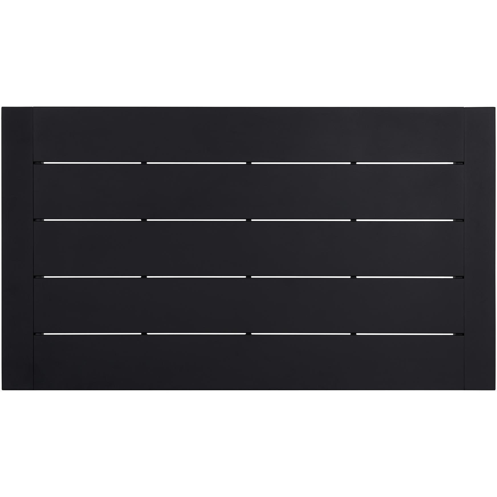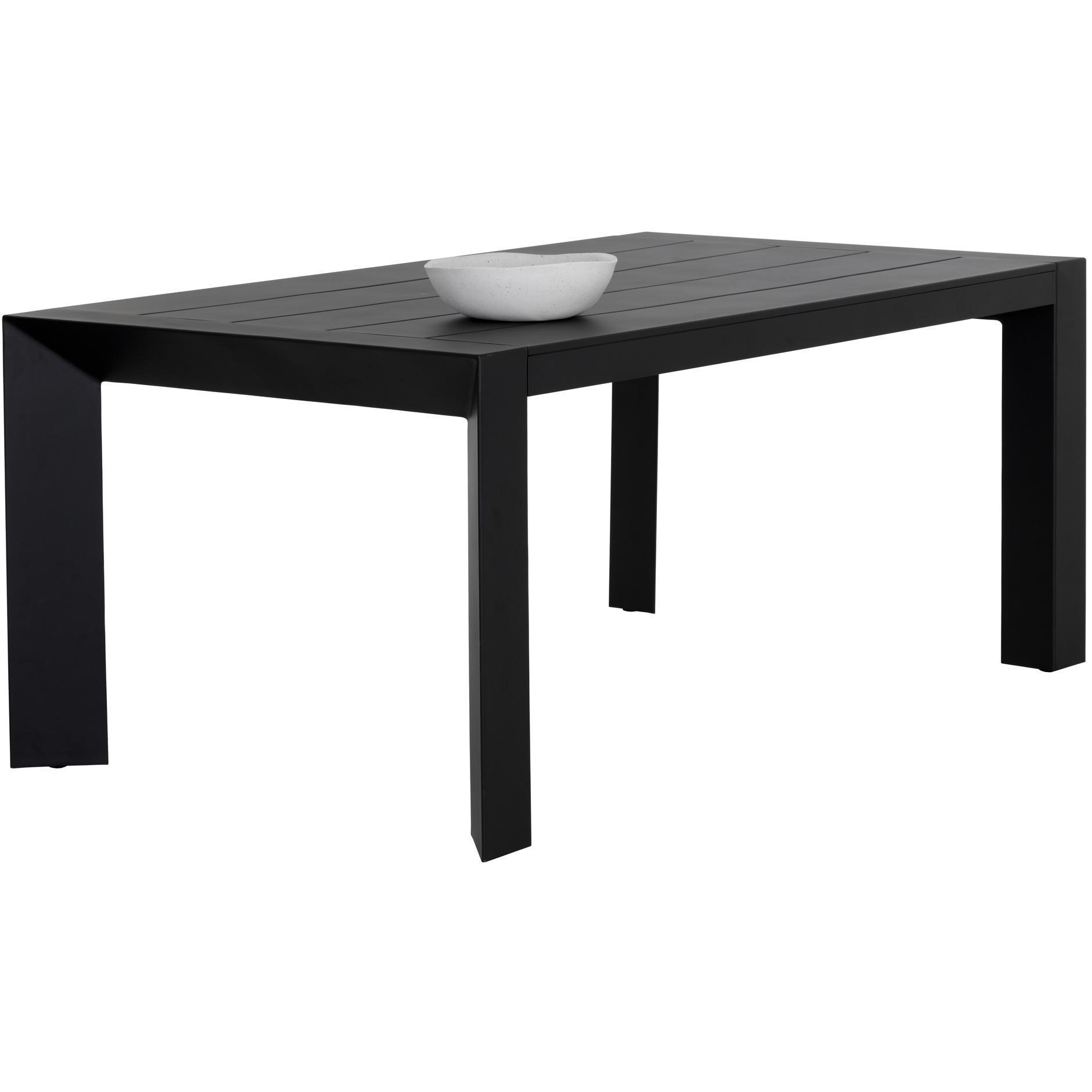 The Merano Dining Table is a modern take on classic design. Sleek lines define its striking silhouette. Constructed from black powder-coated aluminium with a slatted table top. Suitable for indoor and covered outdoor spaces.