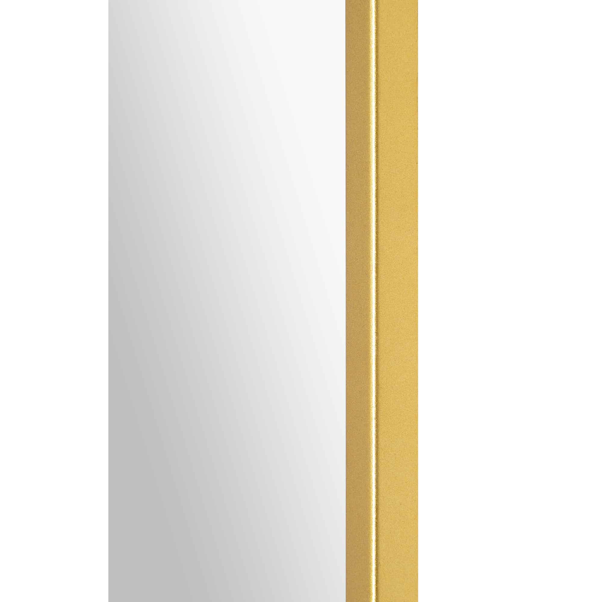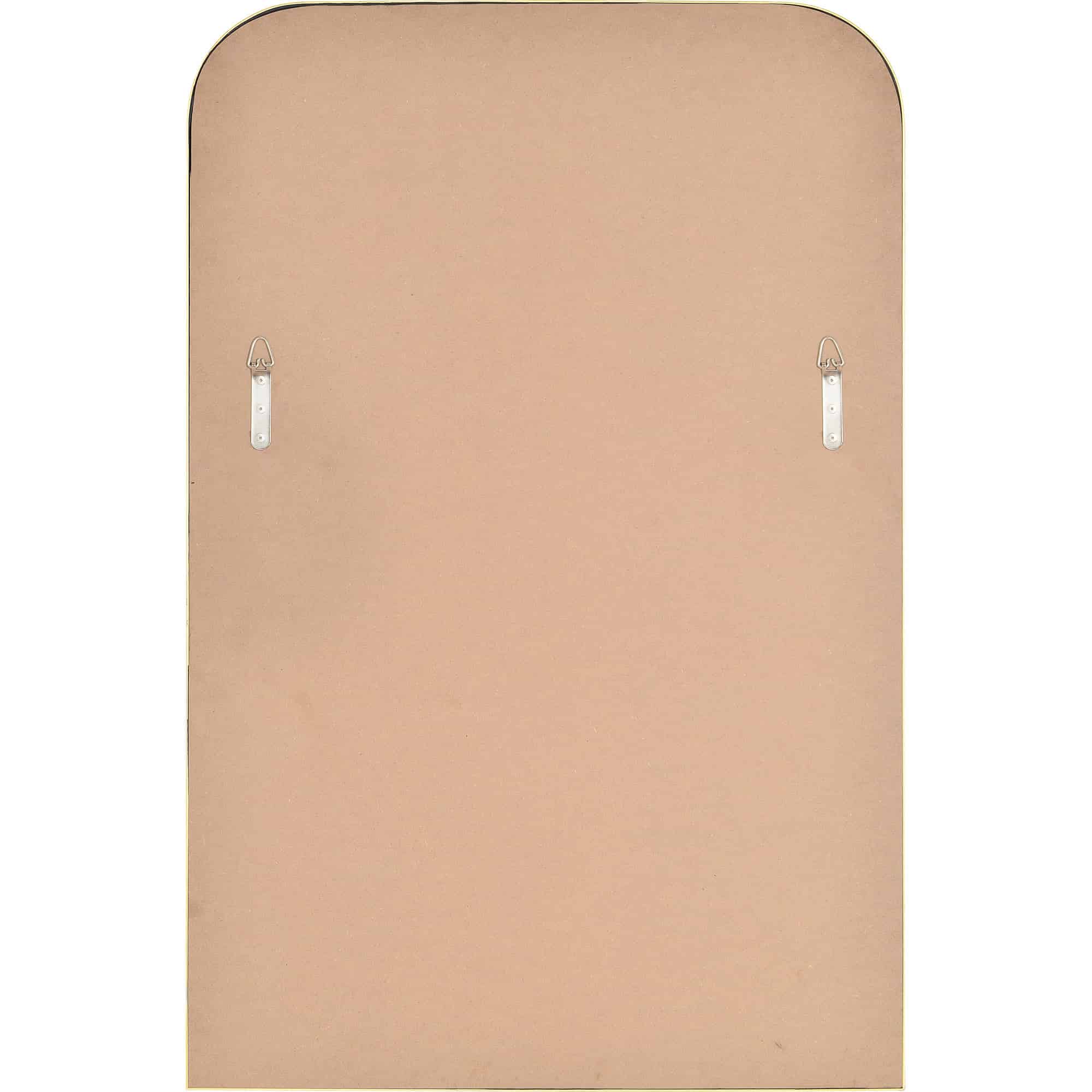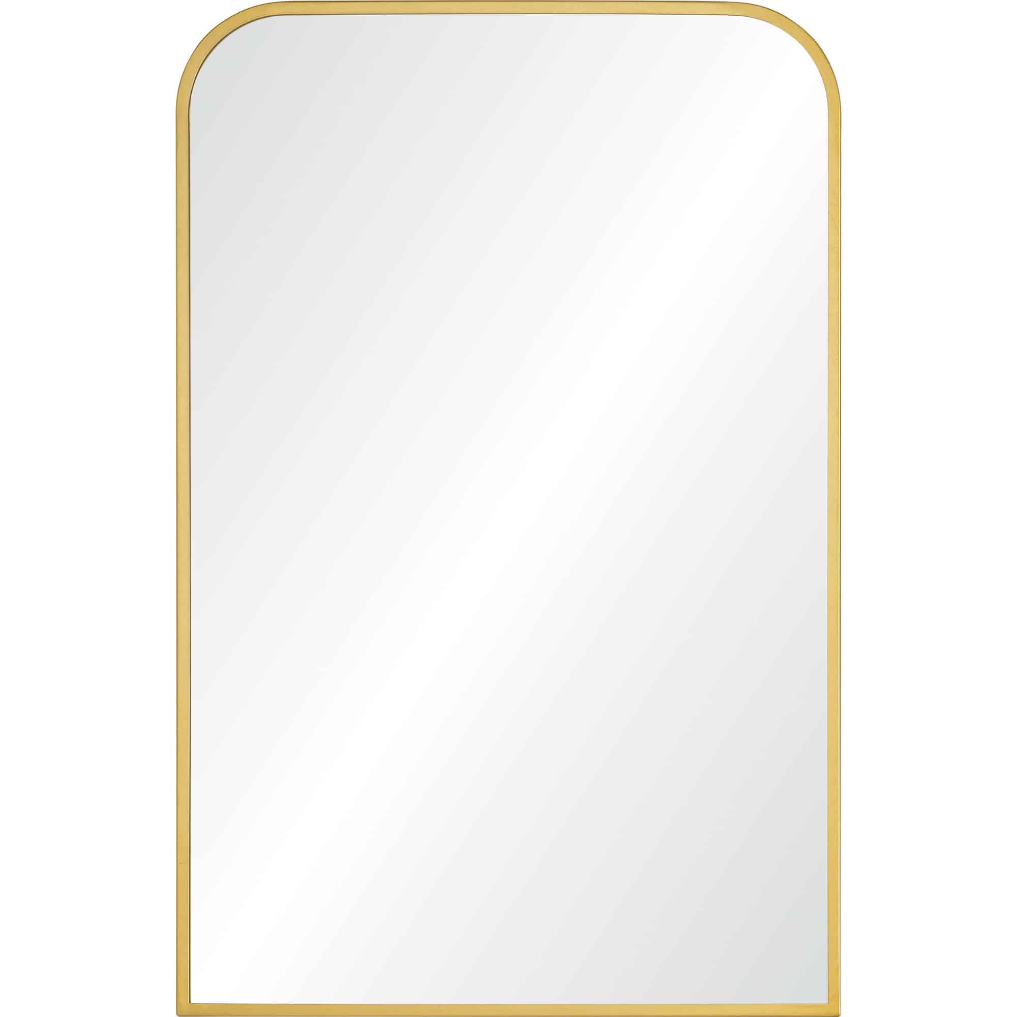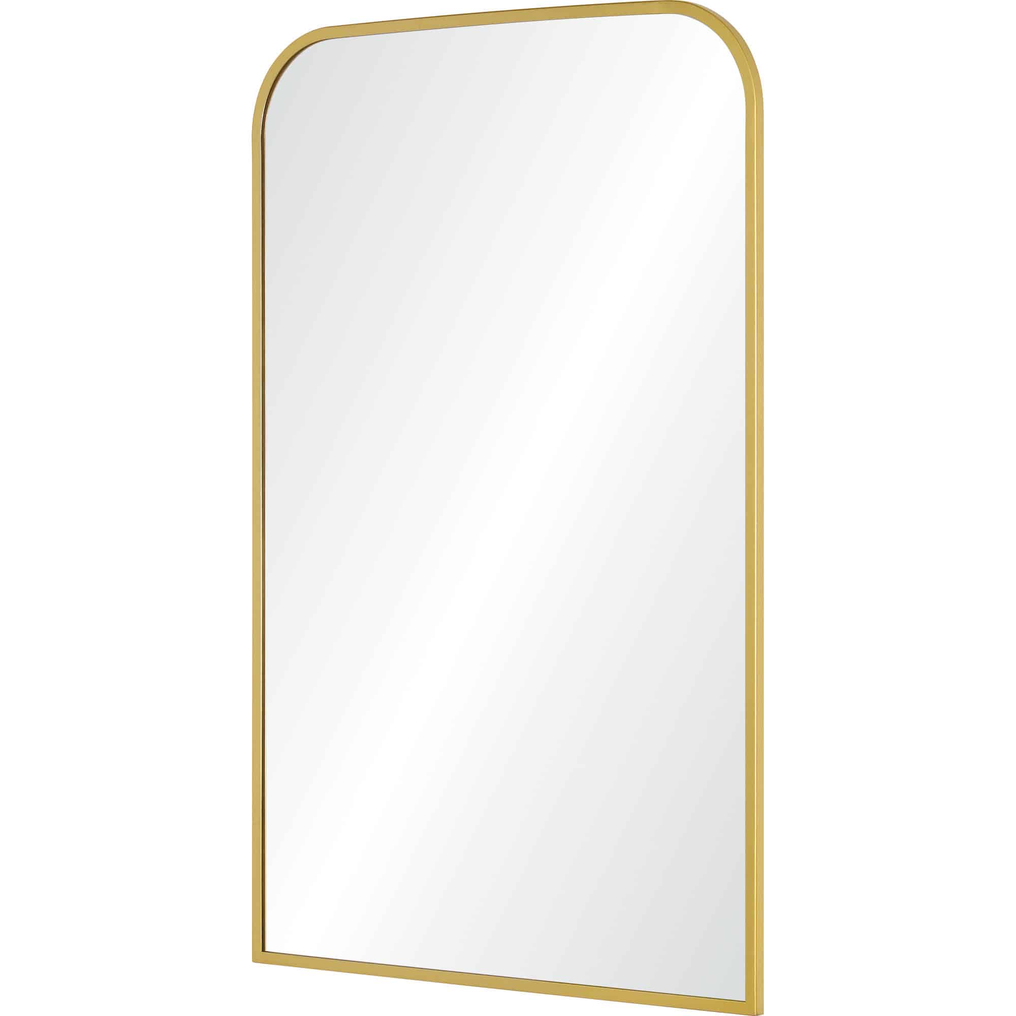 Possessing a modern and timeless quality at once, this mirror complements decor elements in its vicinity while making a stylish statement of its own. At 24 by 36 inches, it holds idyllic dimensions to rest atop a vanity or dresser. With a gold powder-coated iron frame, it is an optimal fit within a mid-century modern interior, with the ability to go classic when styled for such.